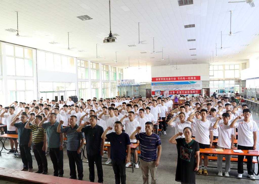 宣誓仪式在雄浑激昂的《国际歌》中拉开帷幕。体育教育系党支部书记张杰宣读了参加本次宣誓的新党员名单,研究生第二党支部郑惠丹同志领誓,全体党员面向党旗进行了庄严宣誓。随后,由新党员代表白文龙同志发言,他表示作为一名新党员,将不断提升自身思想政治素养,以中华作为己任,接过先辈手中的火炬,努力拼搏、奋发图强。