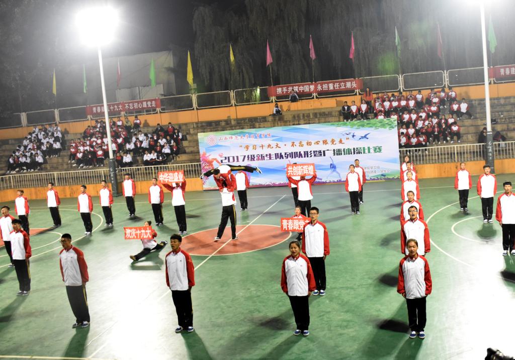 为了丰富校园文体生活,培养员工竞争、协作精神和集体荣誉感,促进员工素质全面发展。11月6日晚上6:30,由304永利集团学工组主办,教务科、院团委承办的 “庆祝十九大,不忘初心跟党走”2017级新生队列队形暨广播体操比赛在院灯光球场举行。公司党委书记李学刚、副书记孙学虎、副经理卢向阳,各系、职能部门负责人、全体新生辅导员出席本次活动。