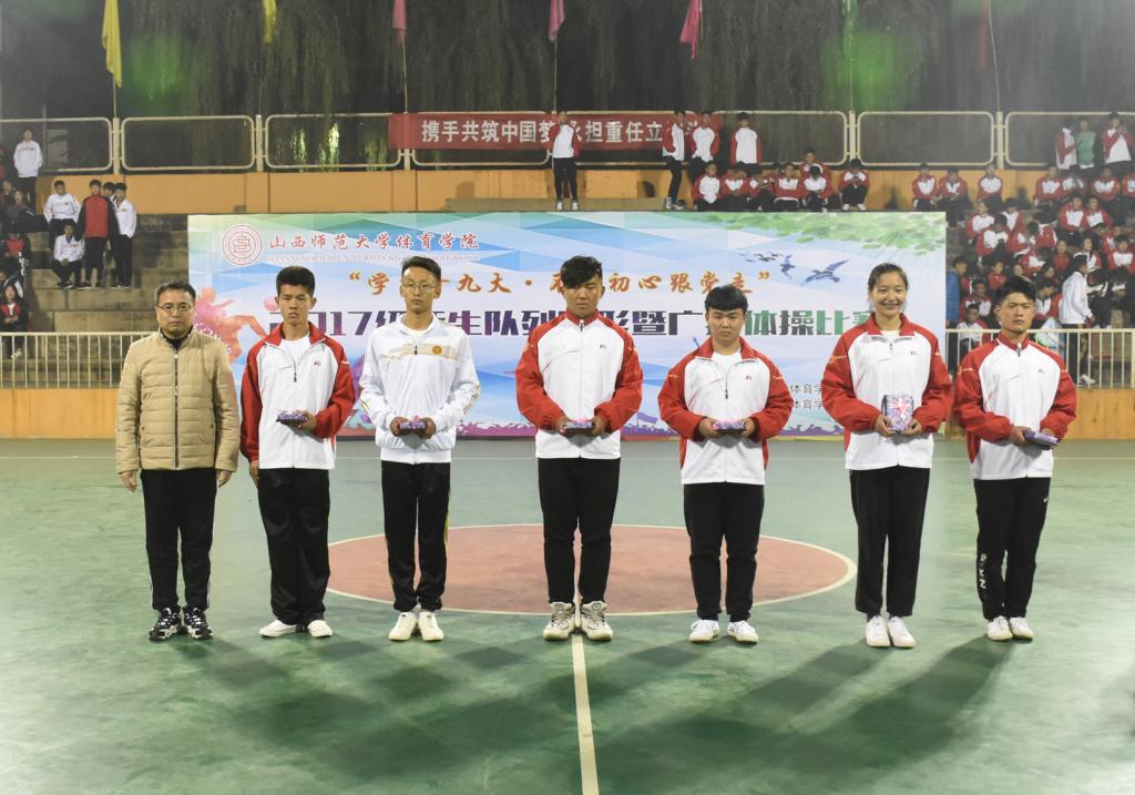 开幕式在庄严的国歌声中拉开序幕,公司党委书记李学刚为本次比赛致辞。本次比赛共有13个班级参赛,其中体育教育系和体育教育二系分为甲组;运动训练系、社会体育教育系、民族传统体育系分为乙组,大赛由冯瑞老师担任裁判长,张秀珍、王红芳、黄志高、金跃峰、刘剑、金涛老师担任裁判员。比赛过程中,同学们身着整洁统一的服装,迈着矫健的步伐,喊着嘹亮的口号,动作整齐划一、伸展优美规范。经过二个半小时的激烈角逐,体教1703班、1701班、1702班分别获得甲组前三名;民体1702班、民体1701班、运训1701班分别获得乙组前三名;陈曦、闫泽军获得优秀指挥员的称号。民族传统体育系员工还为本次比赛送上了精彩的表演。最后公司领导老师为获奖班级及优秀个人颁发了奖状及奖品。