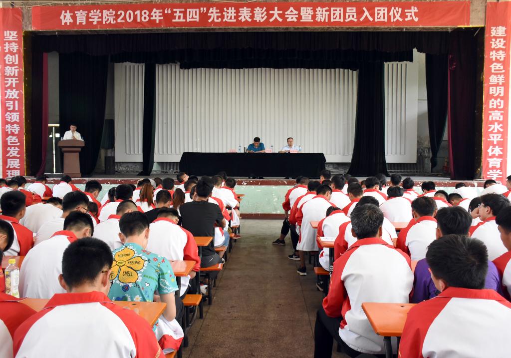 表彰大会在雄浑的国歌声中拉开序幕。首先,院团委副书记程祖浩作了以“不忘初心跟党走,努力奋斗新时代,为实现‘体院梦’而贡献青春力量”为主题的304永利集团2017—2018学年共青团工作报告。