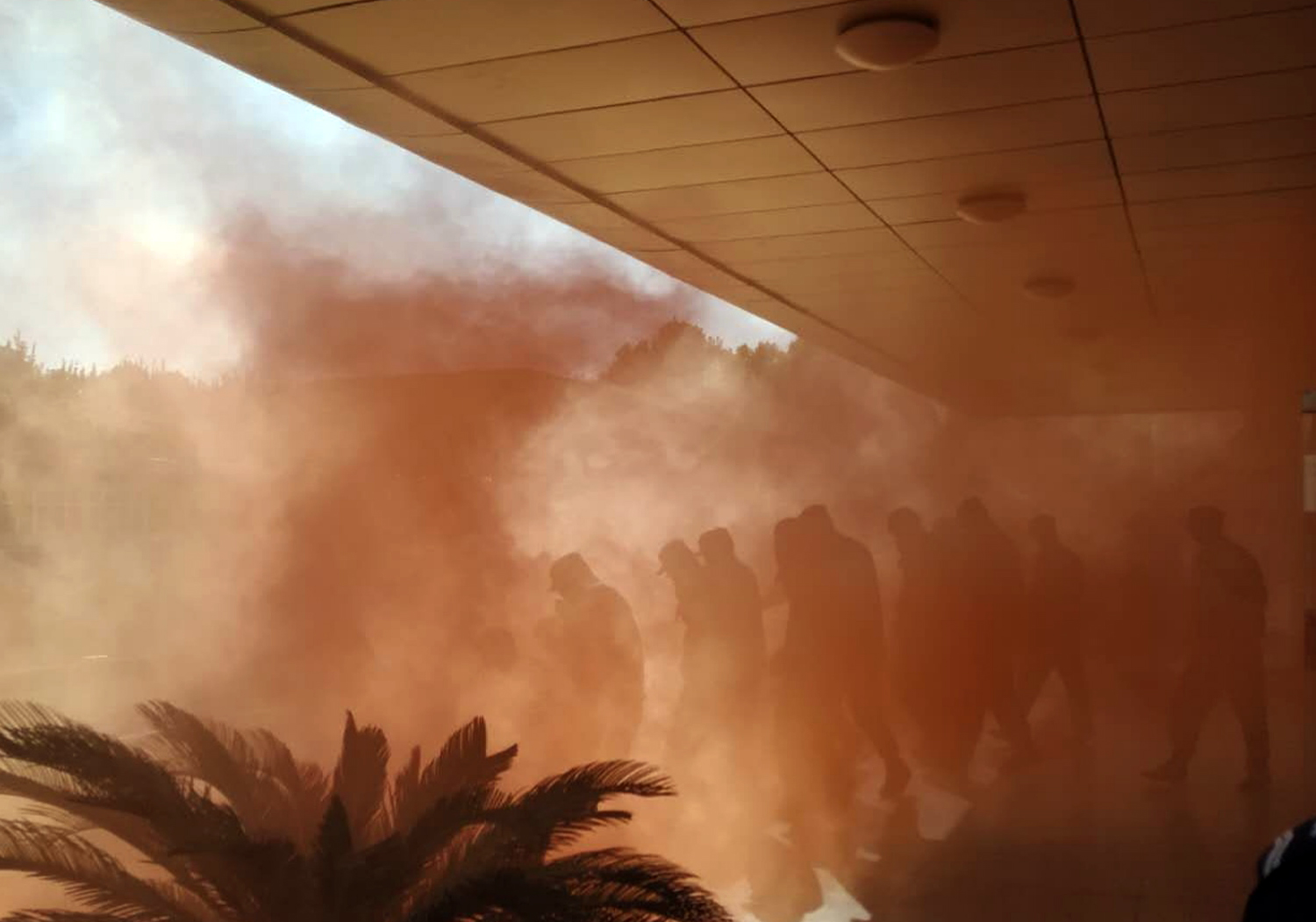 接着,全体新生在教学楼内进行消防应急疏散演练,伴随着一声紧急的哨声,同学们俯身弯腰,捂住口鼻,有序逃离危险地带。