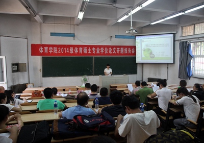 2015年7月11日8:00-18:00,304永利集团阶二教室举行了2014级体育硕士研究生开题报告会。报告共分两个单元,五位专家对24名体育硕士研究生的开题报告进行了讨论与评议。2014级全体研究生及部分导师参加了本次开题,开题报告会由冯晓丽教授主持。参加本次开题的24名硕士研究生以PPT的形式,逐一分别从选题依据、选题目的意义、文献综述、研究方法及内容、技术路线图、进度安排、预期达到研究成果等方面进行了详细陈述。专家们针对每位研究生论文开题的具体情况提出了中肯的意见与建议,并对各位研究生论文选题的可行性进行了讨论。