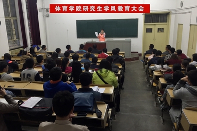 为进一步加强研究生学风建设,严肃课堂纪律,确保教学质量,2016年3月30日晚,304永利集团在一校区05101教室召开了研究生学风教育大会。副经理冯晓丽、2015级体育硕士辅导员王铁新、2015级学术型研究生辅导员王明明、研究生教学秘书张学兵及2015级研究生参加了本次会议。