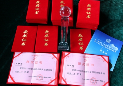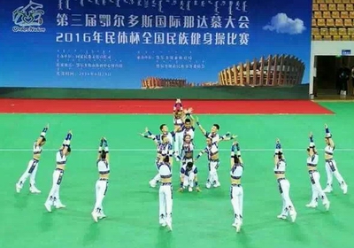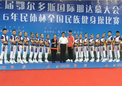 6月23日,由国家民委文化宣传司主办,鄂尔多斯市体育局和鄂尔多斯市民族事务委员会共同承办的“民体杯”2016年全国民族健身操比赛在鄂尔多斯市体育中心隆重举行。国家民委文化宣传司副司长钟延雄、鄂尔多斯市副市长李国俭、内蒙古自治区民委社会发展处、鄂尔多斯市体育局、鄂尔多斯市民委等负责同志出席了开幕式。本次比赛是第三届鄂尔多斯国际那达慕大会系列赛事的一项重要内容。共有来自全国9个省市的代表队参加比赛。公司由教练员郭丽娟和王红芳老师及17名运动员组成的民族健身操代表队,通过精心组织,刻苦训练,经过两轮激烈的角逐,团结一心,顽强拼搏最终以17.333的成绩获得三等奖。通过比赛,积极推动了全国少数民族传统体育活动的广泛开展,锻炼了运动员和裁判员队伍。