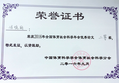 公司社会体育系教师冯晓丽的论文《利益相关者视角下体育社会组织内部治理机制研究》荣获2016年全国体育社会科学年会优秀论文二等奖,并进行了大会专题报告,同时还应邀主持了第六场专题报告会。