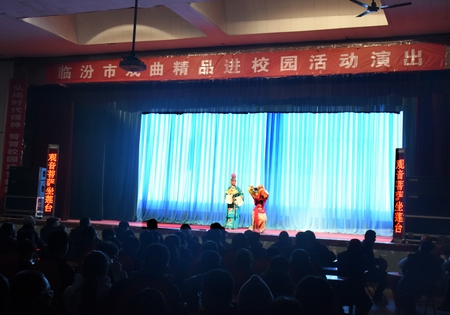 精品戏曲进校园演出活动于2016年12月7日晚七点半在304永利集团大礼堂举办,临汾市小梅花蒲剧院为公司师生奉献了一场精彩的演出。