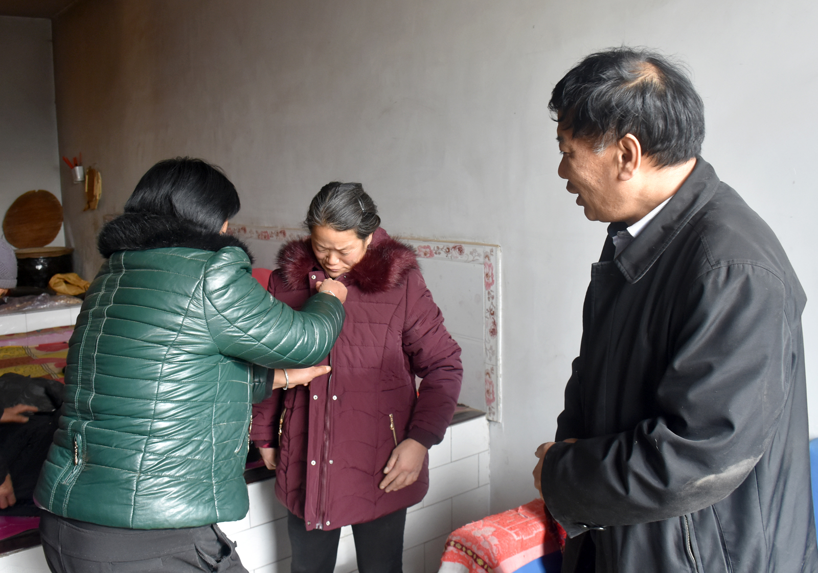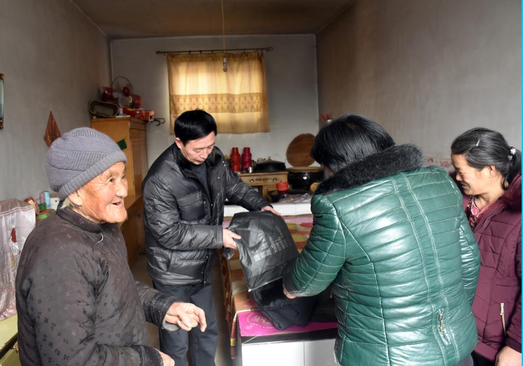 2017年1月10日上午,304永利集团党委书记李学刚、院工会主席赵道卿、院办公室副主任邓碾管一行三人,来到吉县车城乡桃村结对帮扶户程彦忠家进行走访慰问。带着304永利集团全体教职工的牵挂与爱心,送去了米、面、油和过年服装,并送上了500元慰问金。程彦忠一家有三口人,本人智障,媳妇残疾,还有一个80多岁的老母亲。在其家中,李学刚书记详细询问了他们一年来的生产、生活情况和冬季取暖情况,与老人促膝长谈,了解他们的身体状况,祝福他们好好生活,要相信党、相信组织,过一个美满的春节。(院办/文 邓碾管/摄)