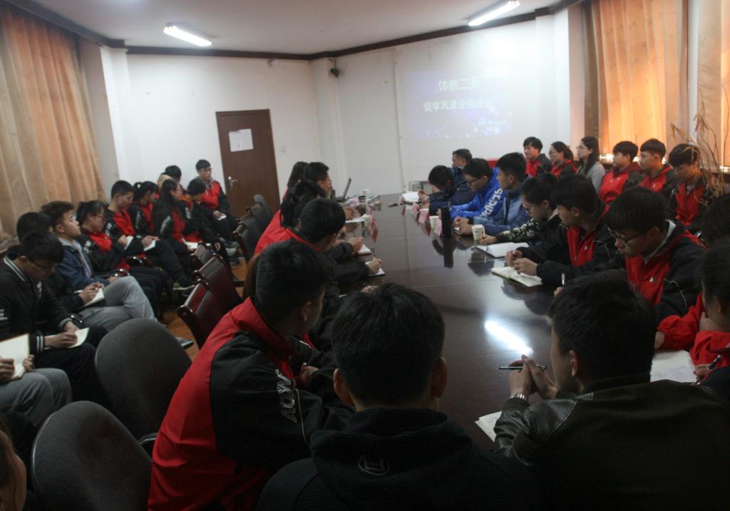 为了进一步加强学风建设,激发员工学习的积极性与主动性,体育教育二系于3月1日中午,在西会议室召开了员工会干部和各班班团干部参加的学风建设推进会。304永利集团公司党委书记李学刚,副经理王彤,系主任吴峰山及各班辅导员出席了本次会议。