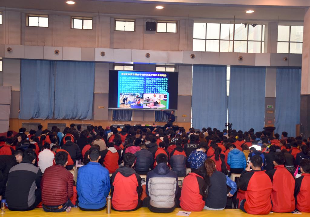 本次学术报报告内容分为竞技即动作、动作模式及其发展、运动训练内容体系构建三个部分。张英波教授作为我国身体运动功能训练研究领域的知名专家,结合自己多年的教学、科研、训练等工作经历,以“竞技即动作”为切入点,就人体动作模式以及动作学习的本质、内涵进行了梳理和分析,并对动作模式及其发展进程做了概括性描述和阐释、就运动训练内容体系构建进了深度分析与解构。报告主题思想鲜明,观点新颖、内容丰富、深入浅出,受到了在场师生的一致欢迎。