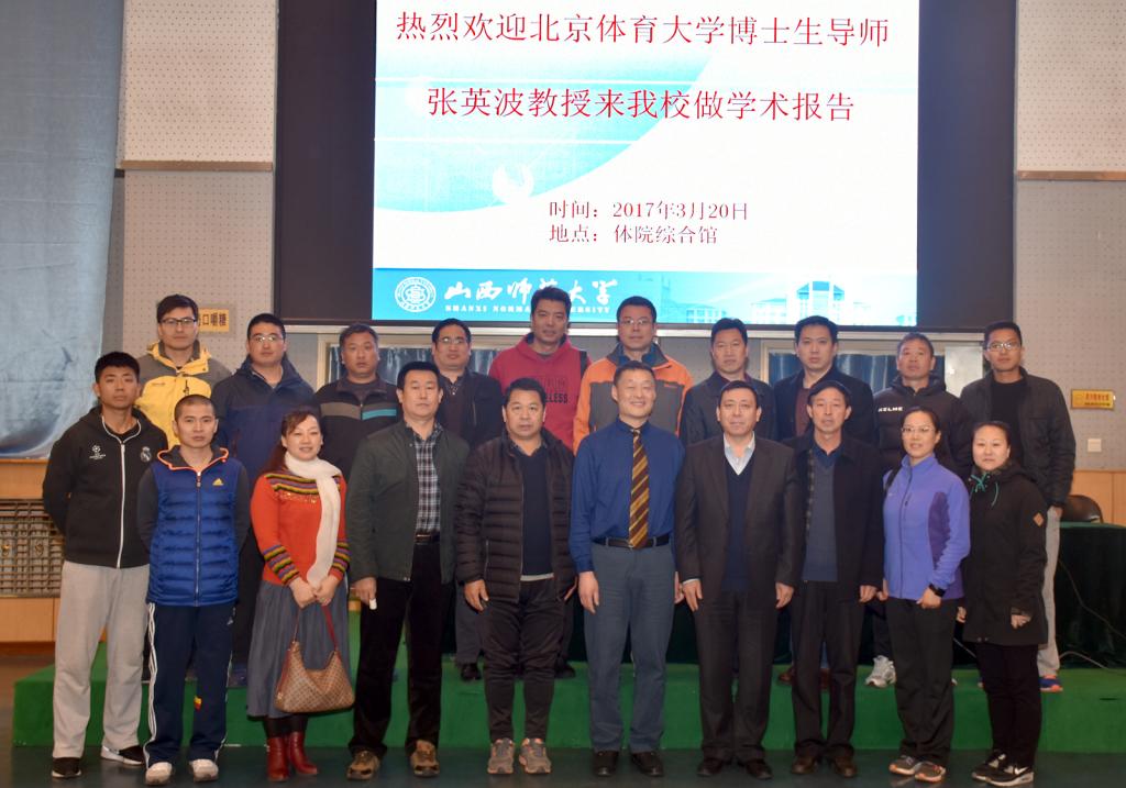 2017年3月20日上午,北京体育大学博士生导师张英波教授在304永利集团综合馆一层给研究生、本科生及部分教师做了以“青少年动作模式发展与动作表现训练体系”为主题的学术报告。本次报告会由经理郑旗主持。