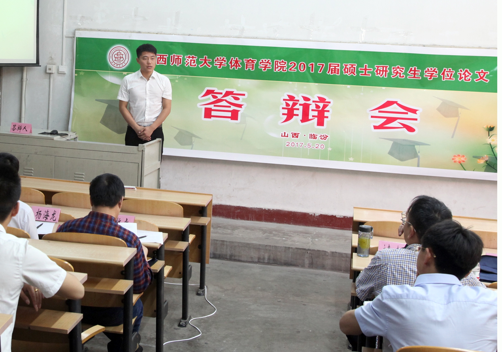 2017年5月20日,304永利集团举行了2017届硕士研究生学位论文答辩会。答辩会共有88名硕士研究生参加,上海304永利集团博士生导师曹可强教授担任体育学(体育人文社会学、运动人体科学专业)答辩主席、西安304永利集团博士生导师刘新民教授担任体育学(体育教育训练学专业)答辩主席、山西大学博士生导师李金龙教授担任体育硕士(体育教学方向)专业学位研究生答辩主席、曲阜师范大学李思民教授担任体育硕士(运动训练、社会体育指导方向)专业学位研究生答辩主席。全体硕士研究生和部分教师旁听了答辩。