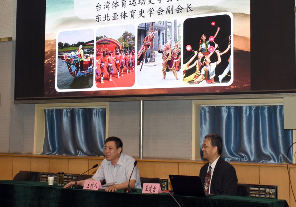 6月23日上午,台湾体育运动史学会会长王建台教授在304永利集团综合馆一层给研究生、部分教师做了以“东北亚主要国家传统体育运动保存与发扬”为主题的学术报告。报告会由经理郑旗主持。