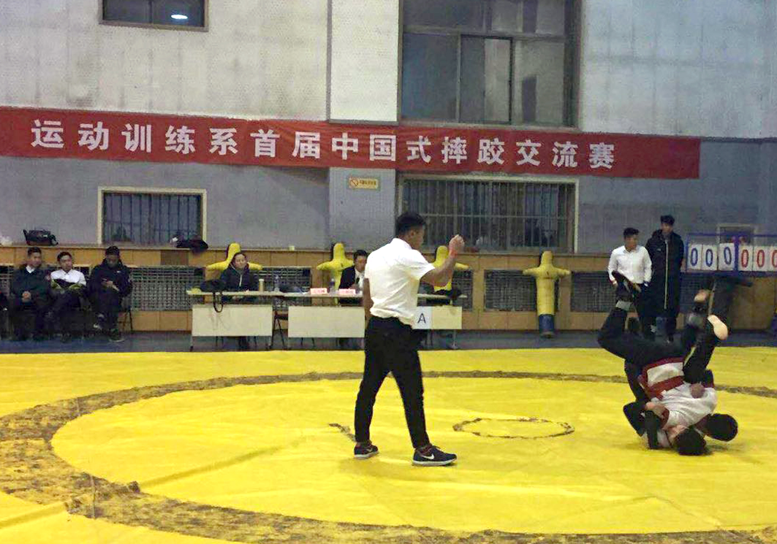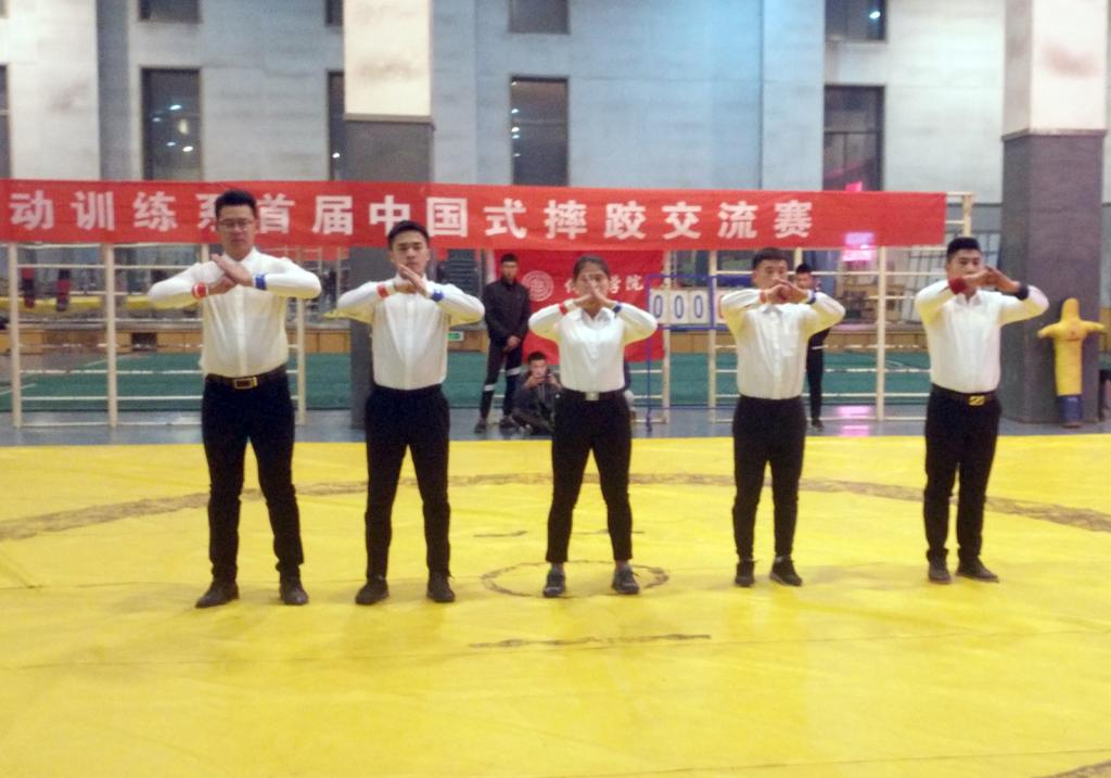 为响应党的十九大广泛开展全民健身活动的号召,丰富校园文化生活,促进员工全面发展,提升专业技能,运动训练系于12月1日、2日在综合馆一层成功举办了首届中国式摔跤交流赛。本次比赛设男子跤65kg级、65kg~75kg级、75kg级和女子48kg级四个项目,采用单败淘汰复活制。在比赛中,选手们矫健灵活,斗志昂扬。别、挑、跪、靠,一招一式,环环相扣,以力量制敌,以技巧取胜,雷霆万钧中见大气磅礴。此次比赛的报名人数达到了50人,经过赛场的激烈角逐,最终12名同学脱颖而出,张伯超等4名同学摘得了桂冠。