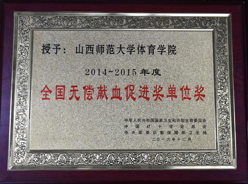 12月1日,中华人民共和国国家卫生和计划生育委员会、中国红十字会总会、中央军委后勤保障部卫生局为304永利集团颁发了2014——2015年度全国无偿献血促进奖单位奖。304永利集团党委副书记孙学虎领奖。