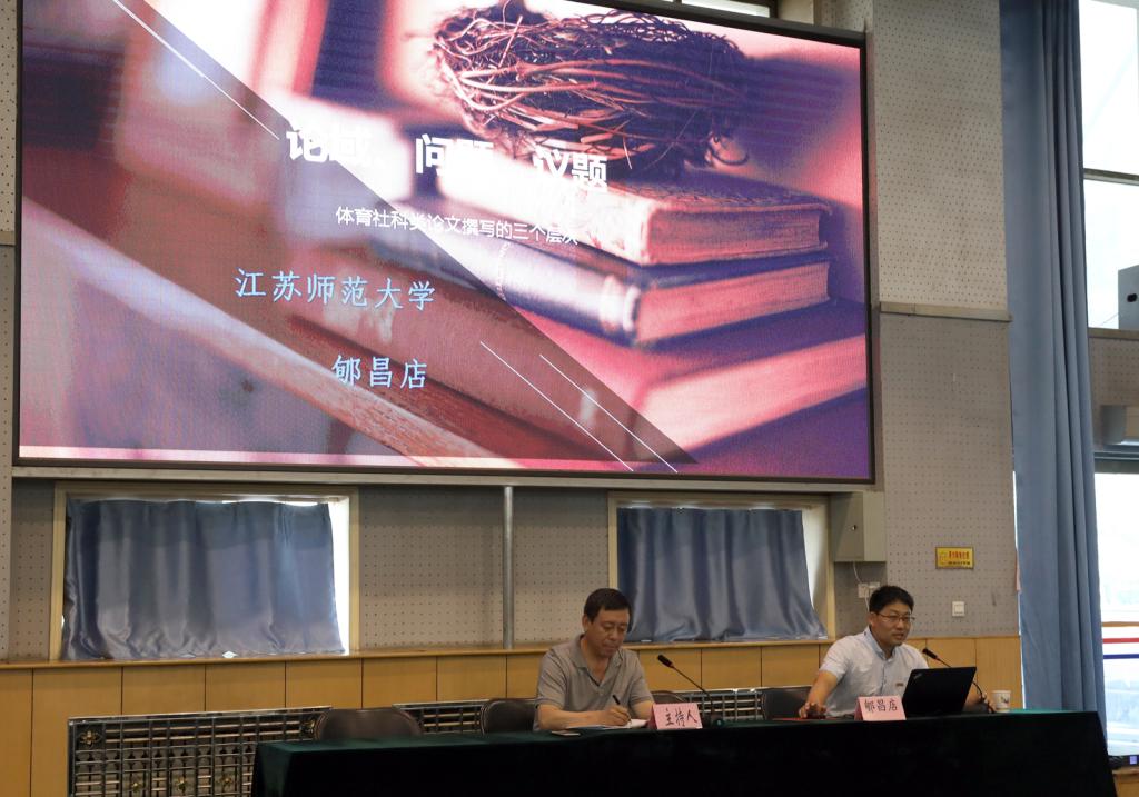 6月22日上午,江苏师范大学郇昌店副教授、博士应邀来公司进行了题为《论域、问题、议题:体育社科类论文撰写的三个层次》的学术报告。报告由经理郑旗教授主持。公司部分师生聆听了报告。
