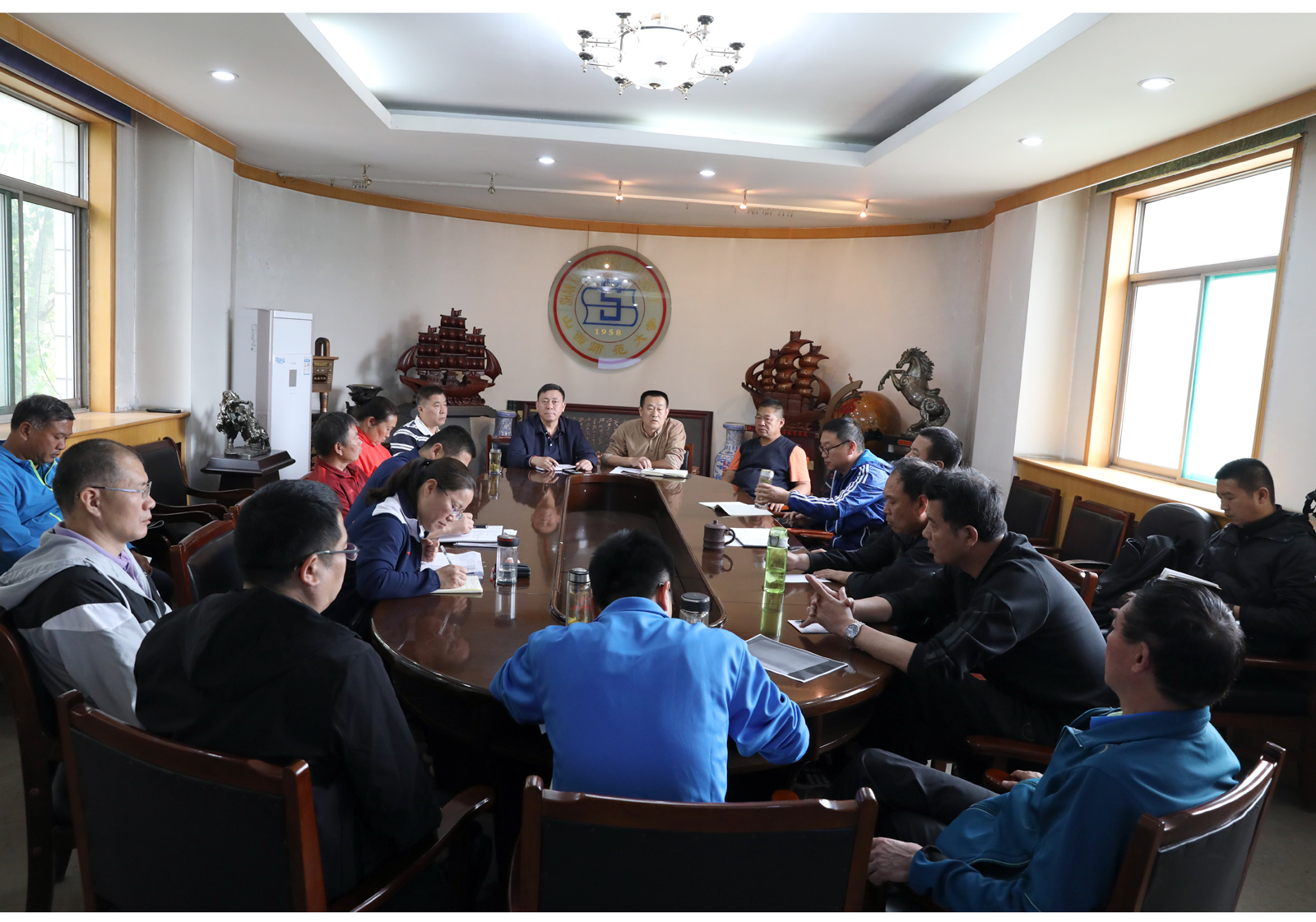 为进一步加强各项目运动队建设,将运动训练与竞赛工作向纵深推进,5月6日下午,公司2018-2019学年第二学期运动训练与竞赛工作会议在东会议室召开。经理郑旗、副经理卢向阳、足球队等11支代表队全体教练员参会。会议由副经理卢向阳主持。