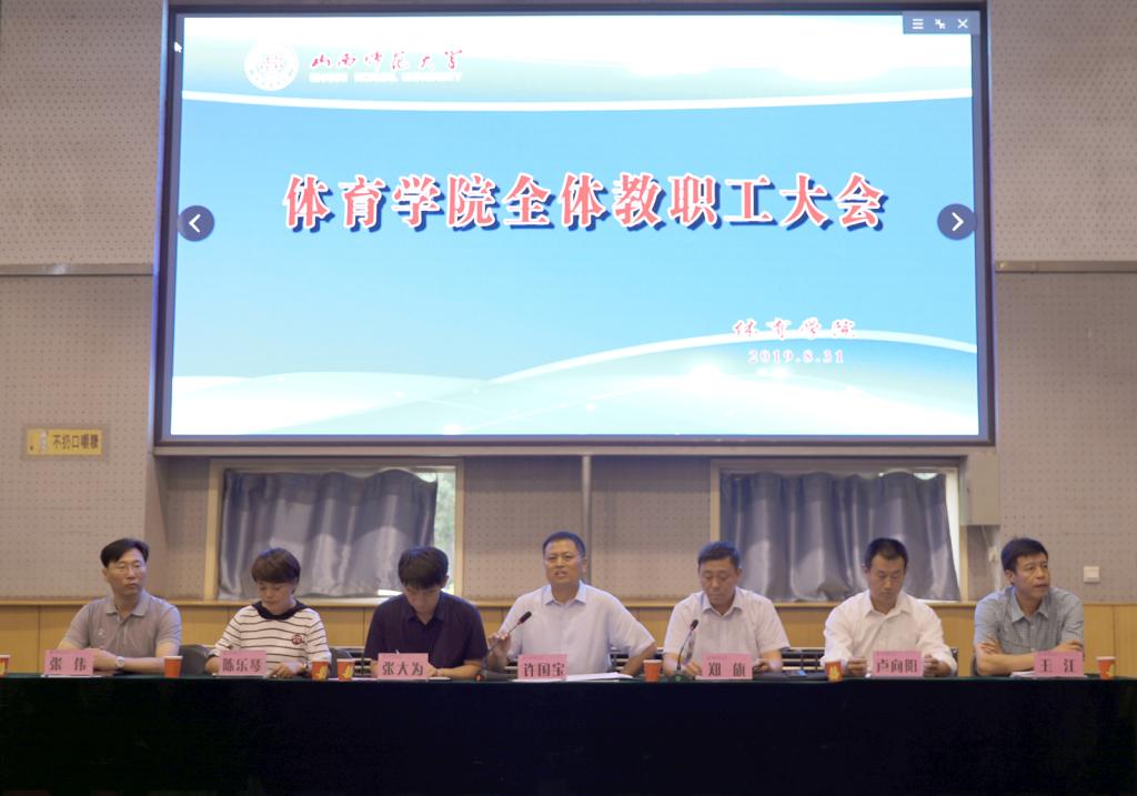 公司党委书记许国宝首先就近期公司重点党务工作进行了安排,并传达了公司召开学习省委十一届八次全体会议精神内容。他说,大家要领会省委书记骆惠宁在全体会议上的讲话精神,要把政治建设放在首位,讲政治,强修养;要在“立德树人”上深下功夫,要深刻认识开展主题教育的重要意义,以高度的责任感、使命感抓好主题教育。希望大家以身作则,调整好心态,以饱满的热情投入到工作中。随后,各分管院领导就联系我们、训练竞赛、重点团队建设与研究生教育、公共体育、本科教学等工作进行了具体安排。