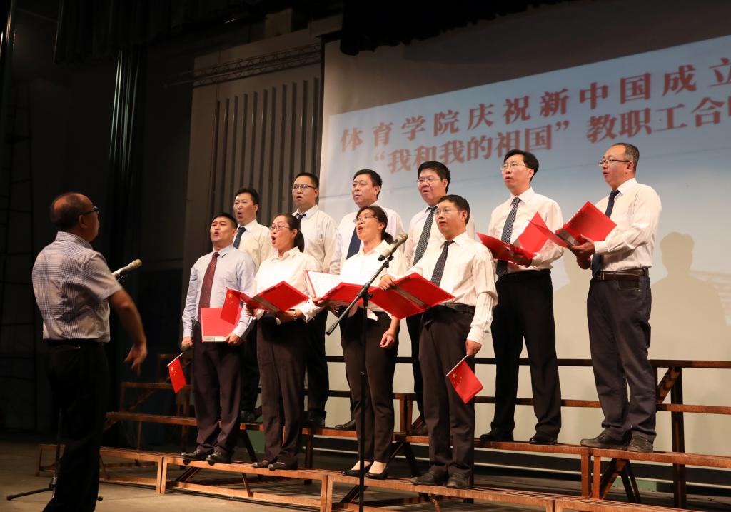 全院教职工共分为7支代表队参加比赛,分别为院机关代表队、公共体育部代表队、体育教育系代表队、社会体育系代表队、武术与民族传统体育系代表队、运动训练系代表队、体育教育二系代表队,比赛曲目为《我和我的祖国》、《团结就是力量》。