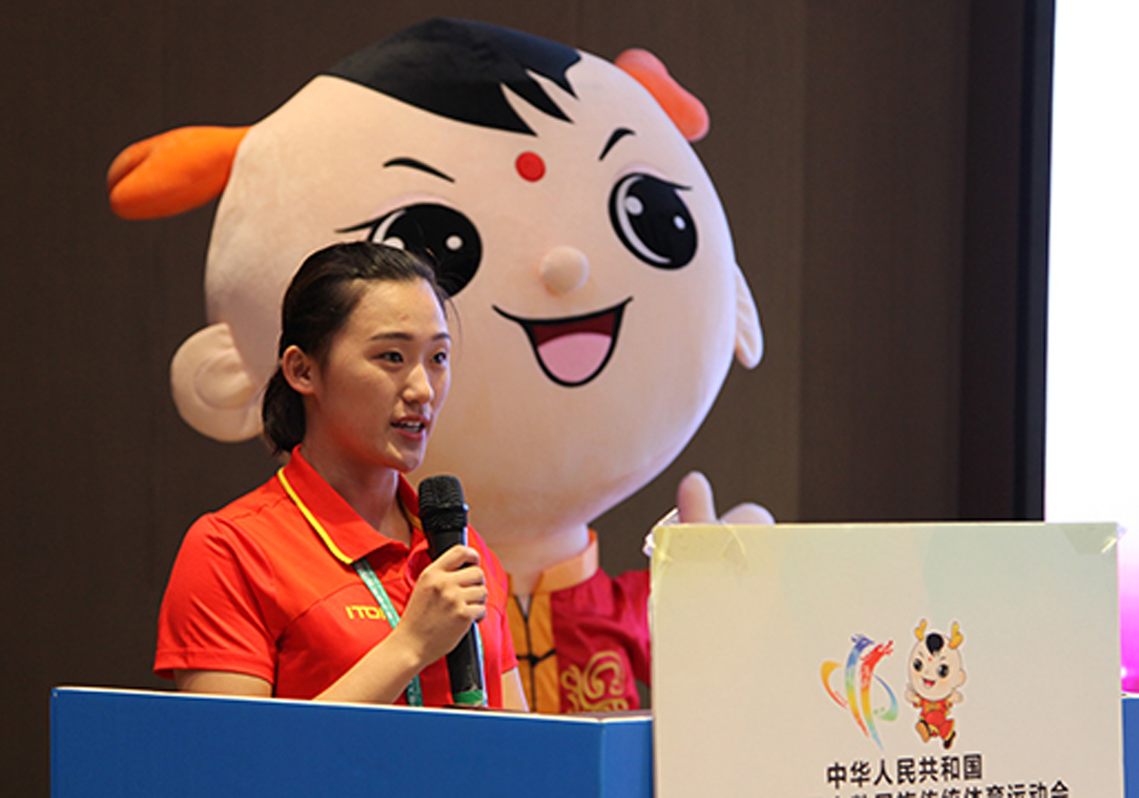 公司员工王漫在山西省代表团赛前动员会上作为运动员代表发言