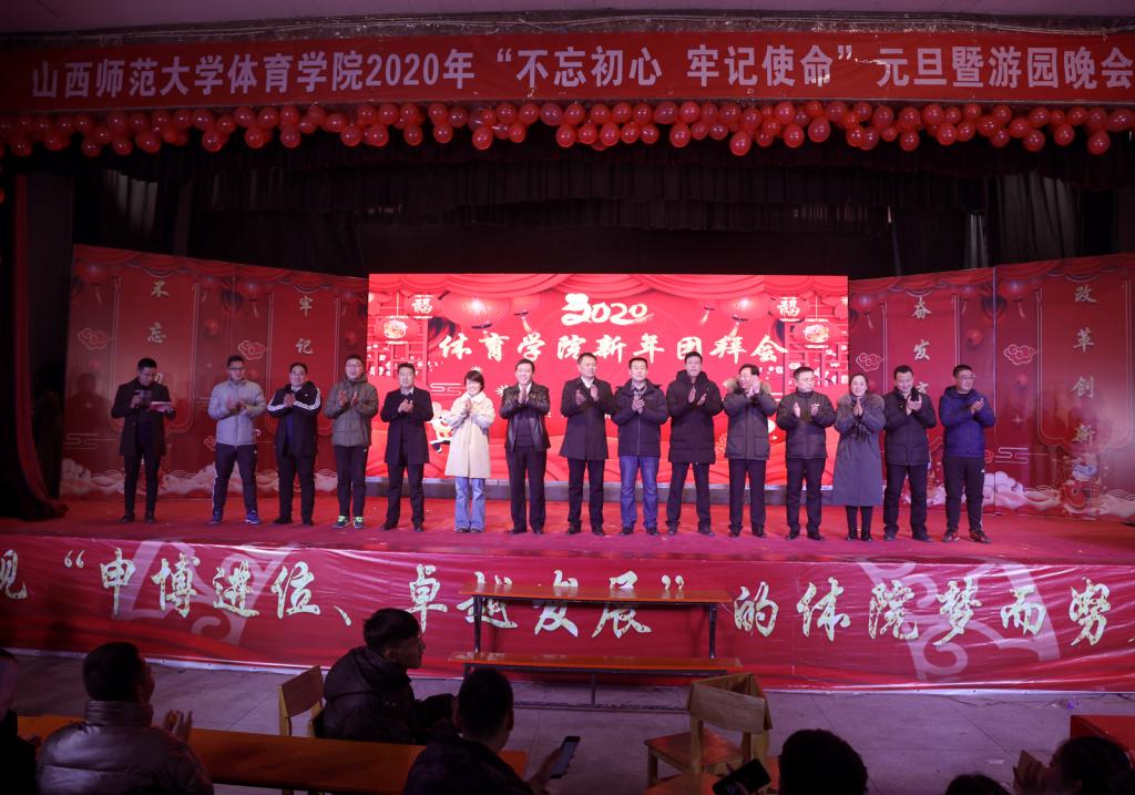 在2020新年钟声敲响之际,院领导和各系部科室主要负责人来到大礼堂游园晚会现场,隆重进行迎新年团拜会,为全院师生们送去2020新年的祝福。团拜会由院办公室主任高贯发老师主持。