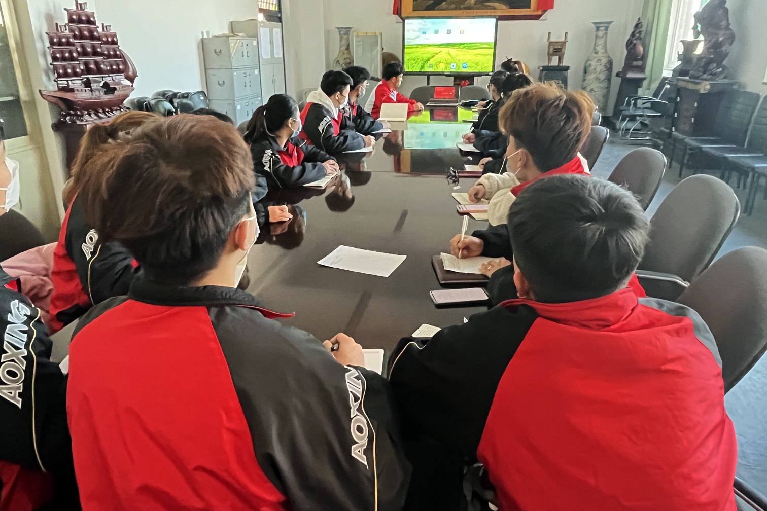 2月24日,公司组织院领导、科级干部、支部书记及支委在7号楼二层会议室观看学习公司党委书记张晓永以“牢记领袖嘱托谱写发展新篇——学习习近平总书记考察调研山西重要指示精神”为题,从人民情怀、脱贫攻坚、文化传承、转型发展等方面学习习近平总书记考察调研山西重要指示精神等具体内容。其余教职工通过腾讯会议在线上收看了课堂直播。