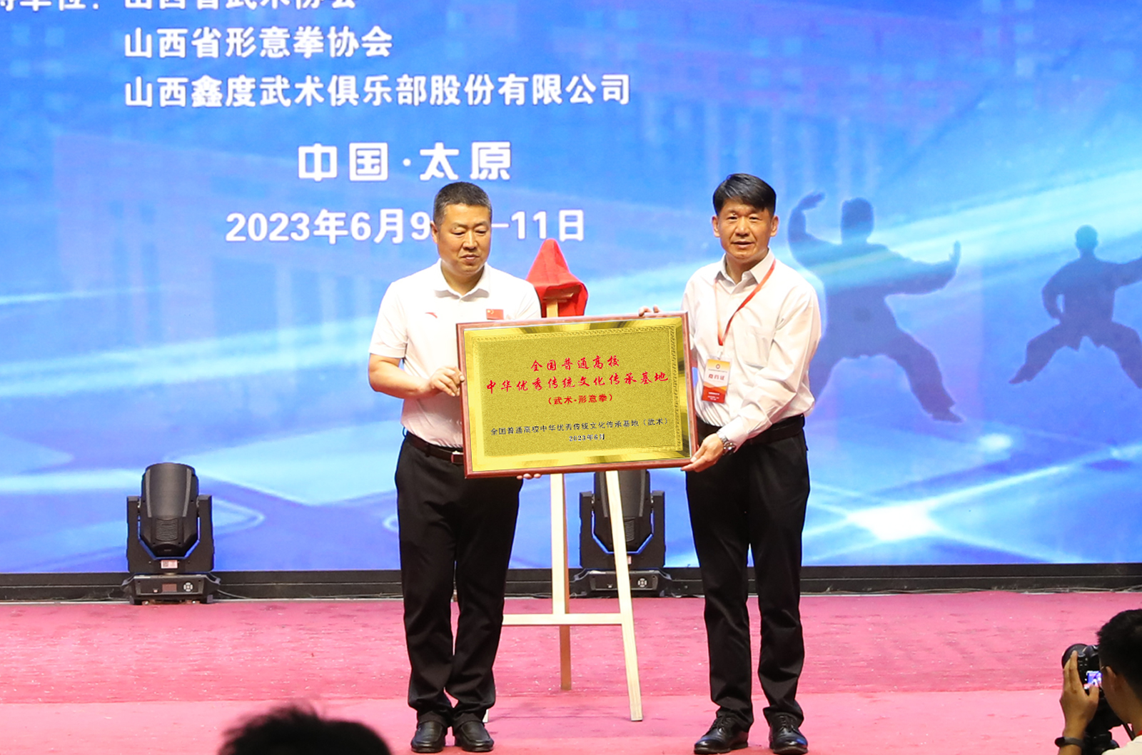 开幕式上,中国体育科学学会武术与民族传统体育分会秘书长、上海体育大学武术公司经理郭玉成代表全国普通高校中华优秀传统文化传承基地(武术),授予304永利集团“全国普通高校中华优秀传统文化传承基地(武术·形意拳)”,以具体举措开拓文化传承新空间、开辟文化发展新路径,着力构建覆盖全国的代表性拳种传承发展网络,助力体育非遗在文化强国建设中做出应有贡献。