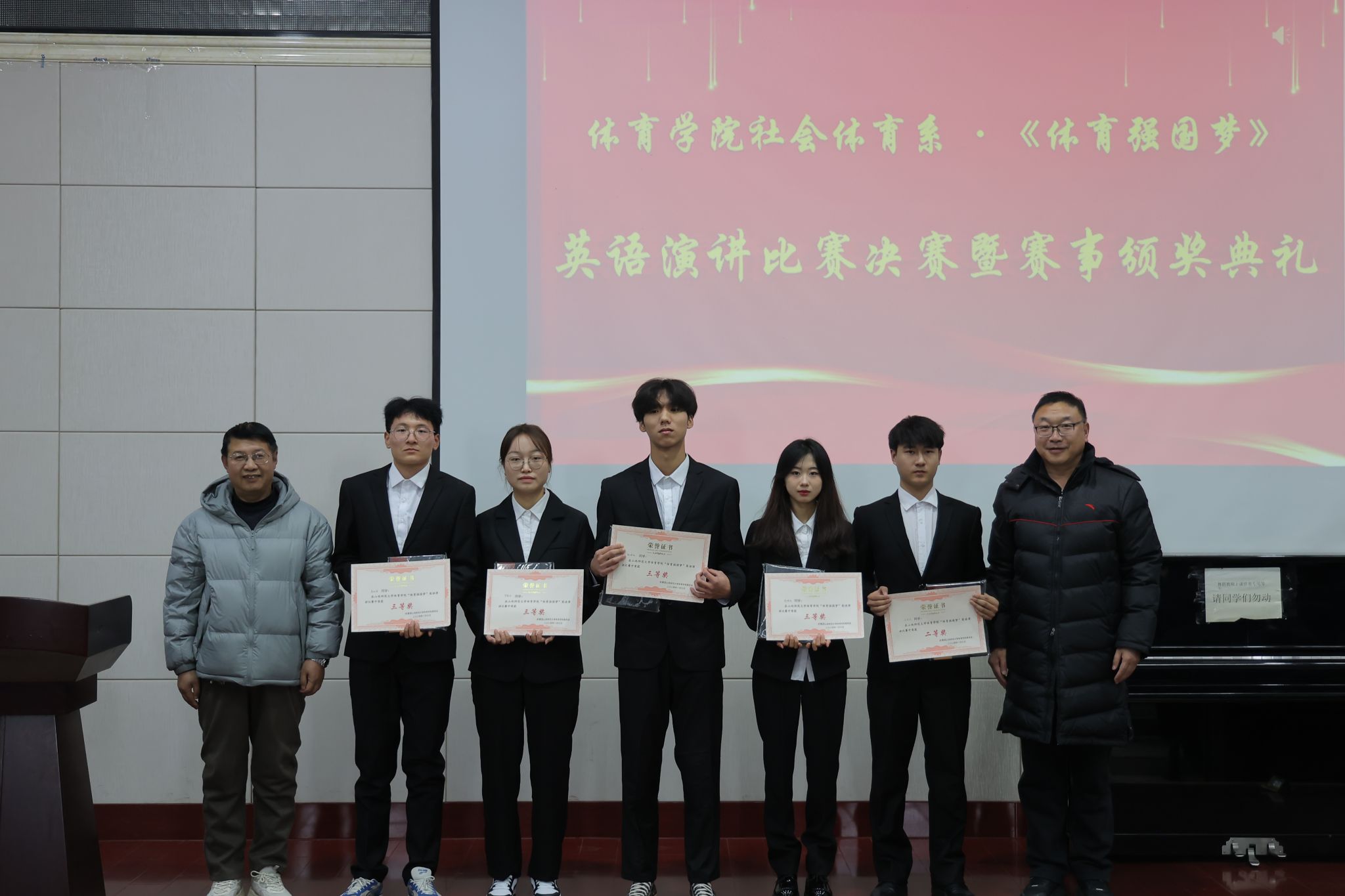 此次英语演讲比赛充分展现了社会体育系员工高超的英语口语水平,同学们在台上演讲时的自信,在回答评委提问时的游刃有余,得到了全体评委老师的高度肯定,进一步提高了员工的英语学习能力,提高了员工学习英语的主动性和自觉性,提高了员工体育强国建设使命感。