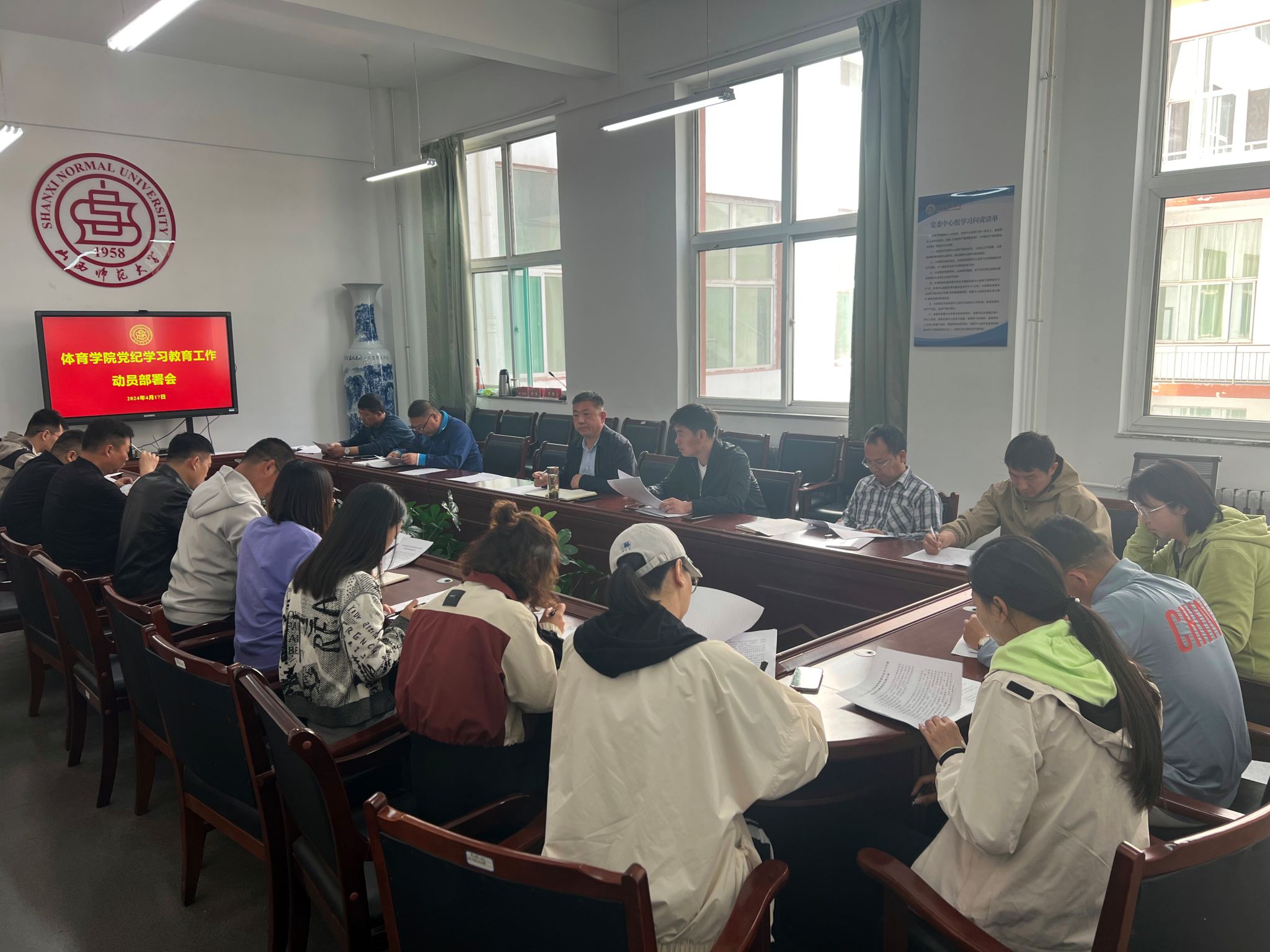 4月17日上午,304永利集团在二层会议室召开党纪学习教育工作动员部署会,启动部署公司党纪学习教育工作。全体院领导、各党支部书记、部分教师党员参加会议。会议由公司党委书记卫建平主持。