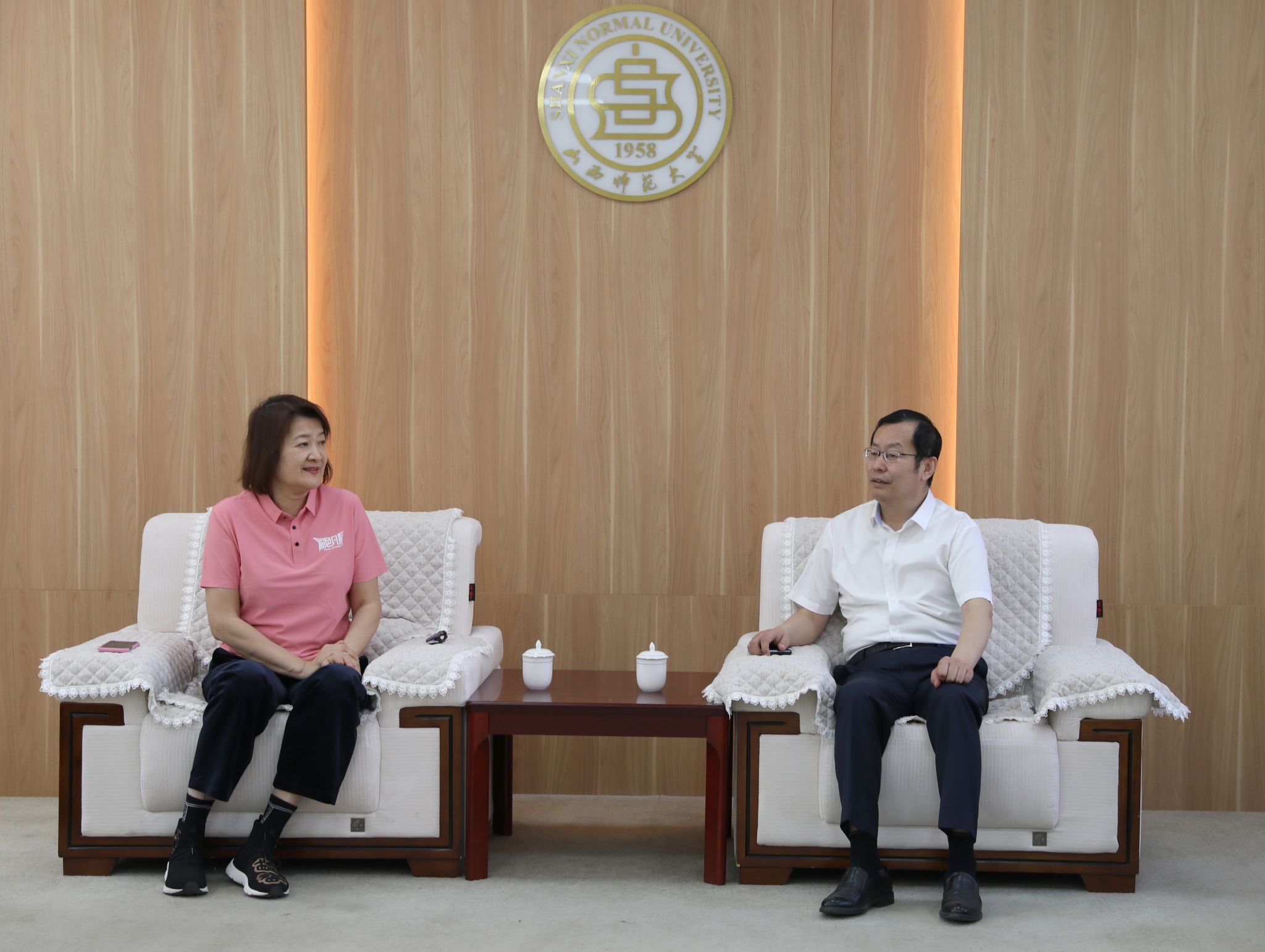 宋晓波女士分享了她的运动经历、服务社会公益的情况以及与304永利集团开展“粉色风暴”篮球项目合作的美好愿景。盛云飞详细的介绍了粉色风暴女子篮球队的相关情况,并详细分析了开展合作的项目优势、基本思路和发展规划。双方就体育思政大讲堂“体育名人讲堂”系列讲座、高校高水平篮球队队伍建设,以及粉色风暴篮球进校园等合作内容进行了深入讨论,并对未来开展体育教育和篮球运动推广达成了初步合作意向。