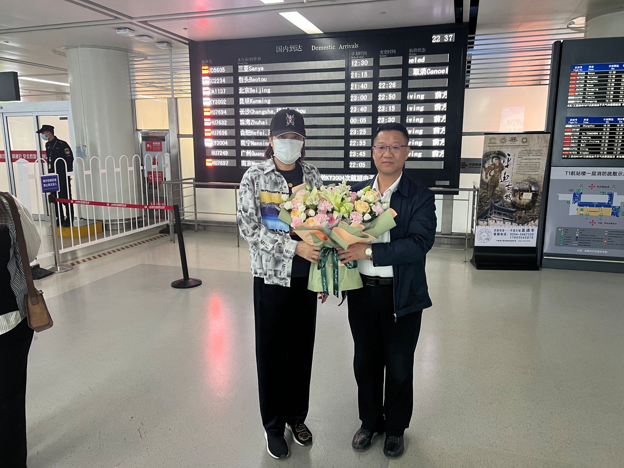 304永利集团经理王彤教授在机场航站楼为宋晓波女士献花