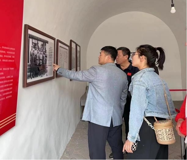 接着来到了晋绥军区司令部旧址,党员们参观了毛泽东、周恩来、贺龙等老一辈革命家曾经工作和生活的地方,更加真实地感受到当年老一辈革命家为了新中国的胜利所付出的艰辛和不易。静谧的院子里一排窑洞向游客述说着“当年的故事”,这是毛泽东、周恩来、任弼时等同志的“进京赶考”的一“站”。在此期间,毛泽东同志领导开展了大量的革命活动,在晋绥干部会议发表讲话,与晋绥日报编辑人员进行谈话,还召开了多次座谈会,并亲笔题写了土地改革和新民主主义革命时期的总路线和总政策。参观完毕后,在窑洞前,参加活动的全体党员同志列队肃立,面向党旗,高举右拳,“我志愿加入中国共产党,拥护党的纲领……”,庄严宣誓,用铿锵有力的话语,再次重温矢志不渝跟党走的决心。