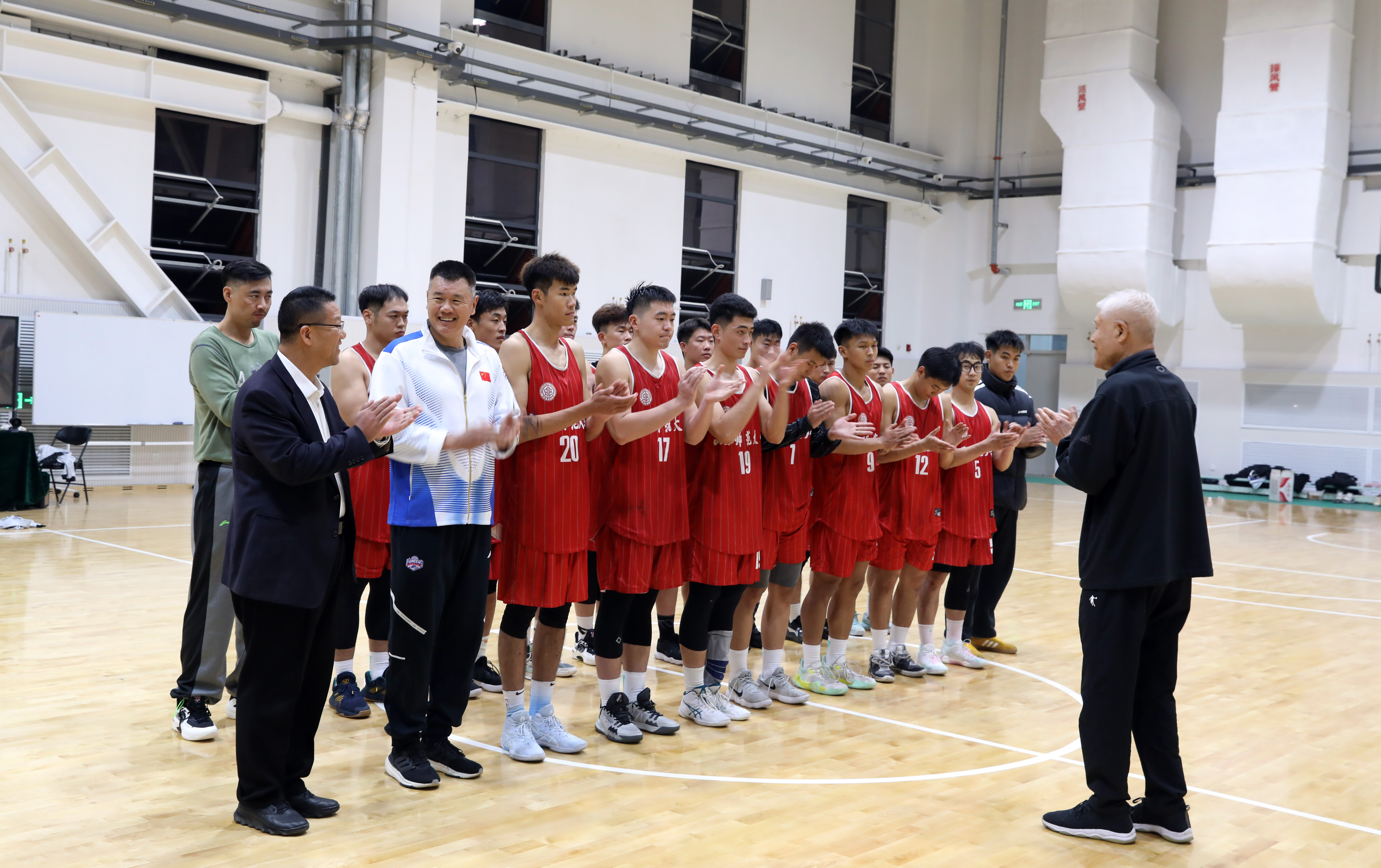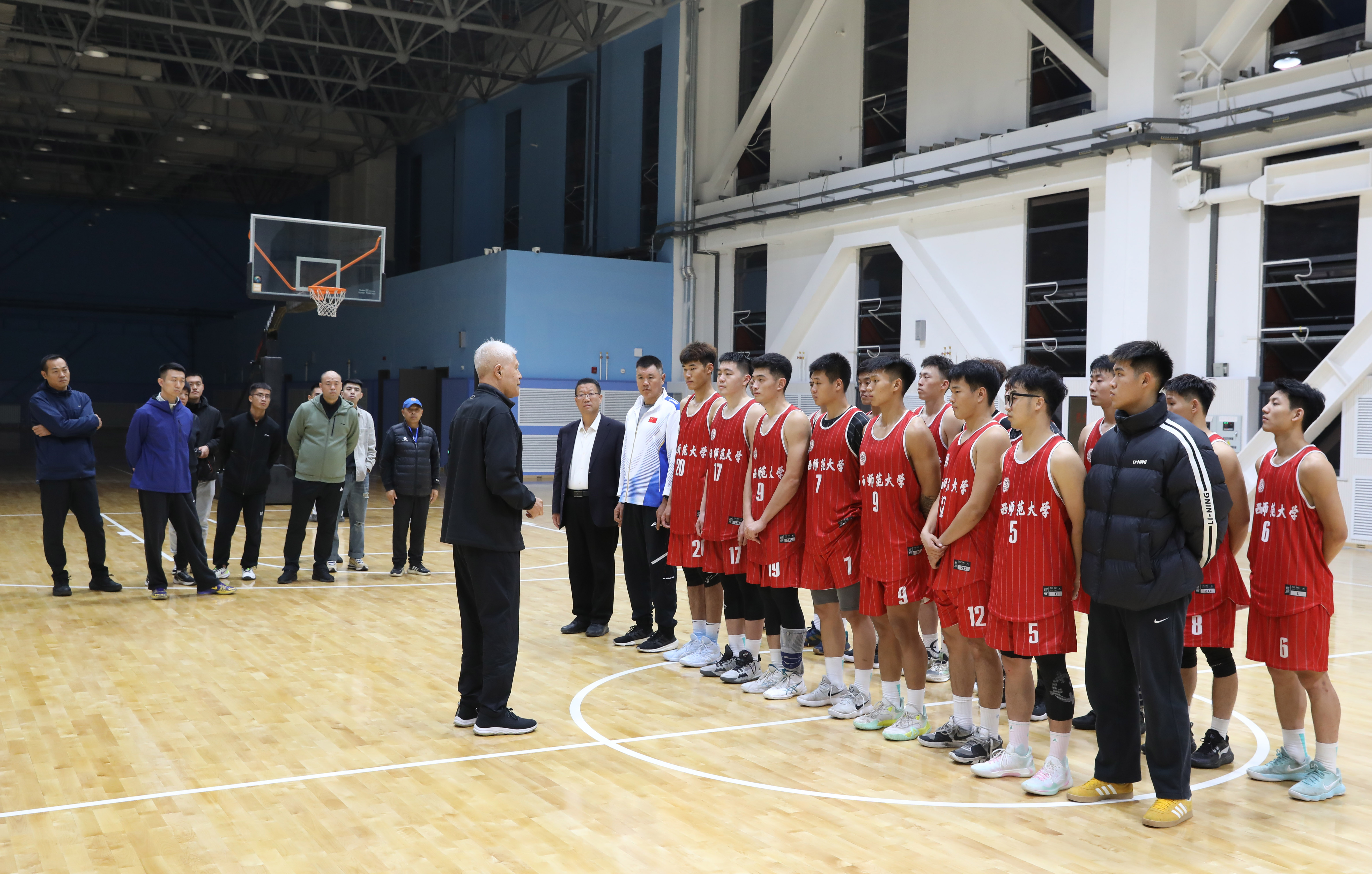 在交流发言环节,篮球专业教师代表率先发言。他们就教学方法、课程设置等方面的问题向蒋兴权教练请教。蒋教练认真倾听,并结合自己的经验给出了宝贵的建议。男篮教练员刘铁就球队的战术安排、队员的心理辅导等方面与蒋教练进行了深入的探讨。蒋教练强调,战术的制定要灵活多变,要根据对手的特点进行针对性的布置。男篮队员们也纷纷抓住这个难得的机会,向蒋教练请教如何提高自己的技术水平和比赛能力。蒋教练鼓励队员们要刻苦训练,勇于拼搏,在比赛中要保持冷静,发挥出自己的最佳水平。