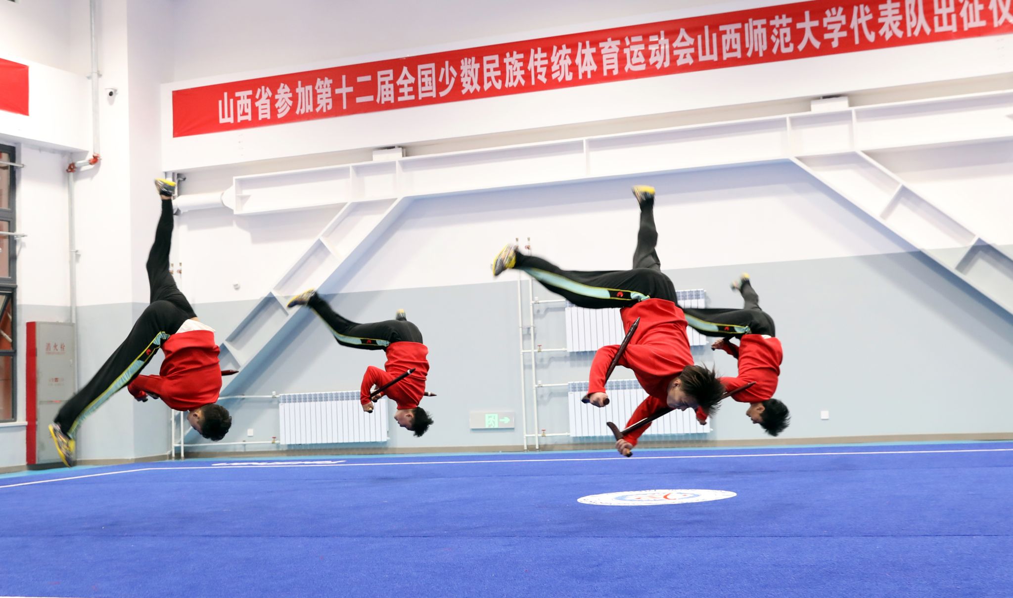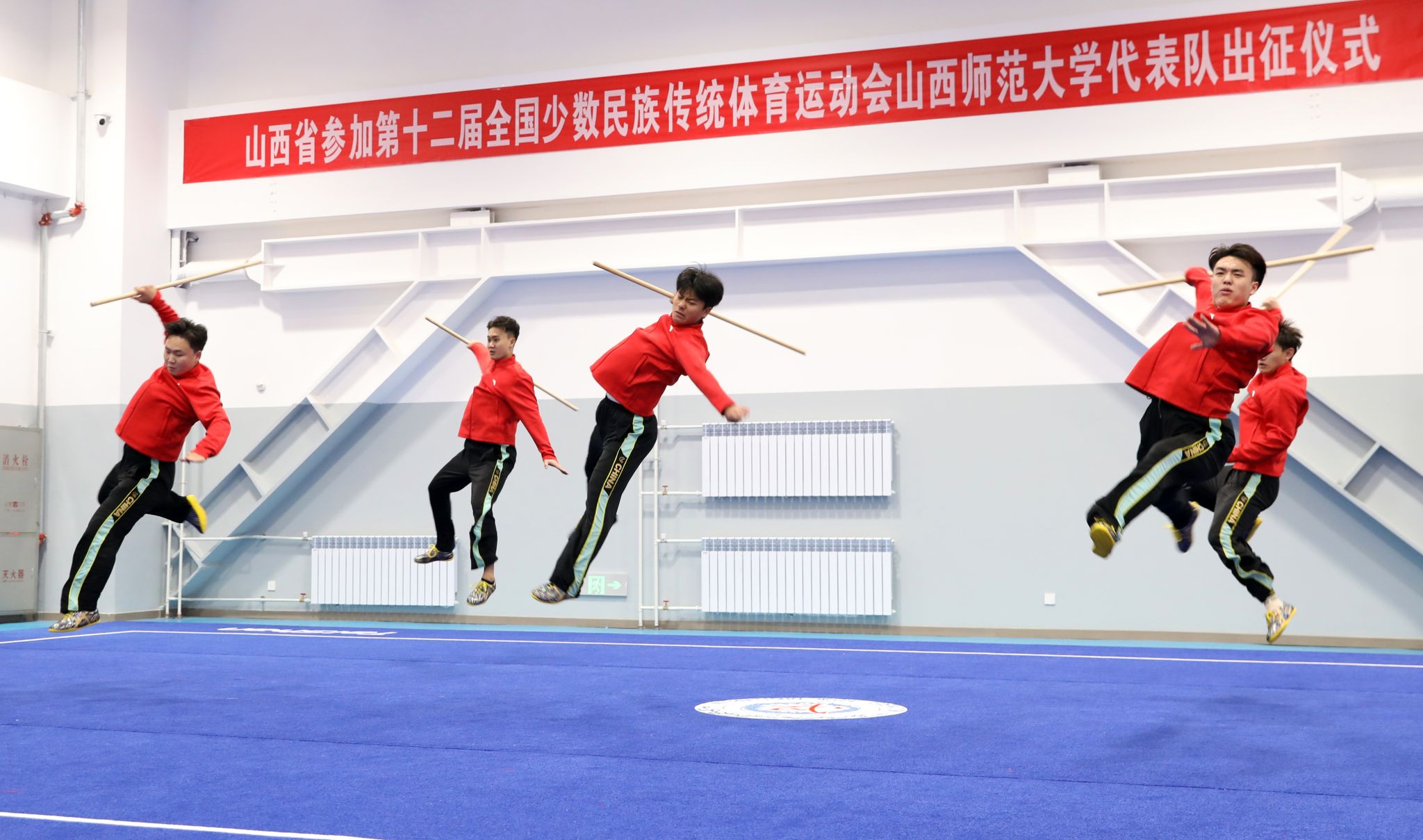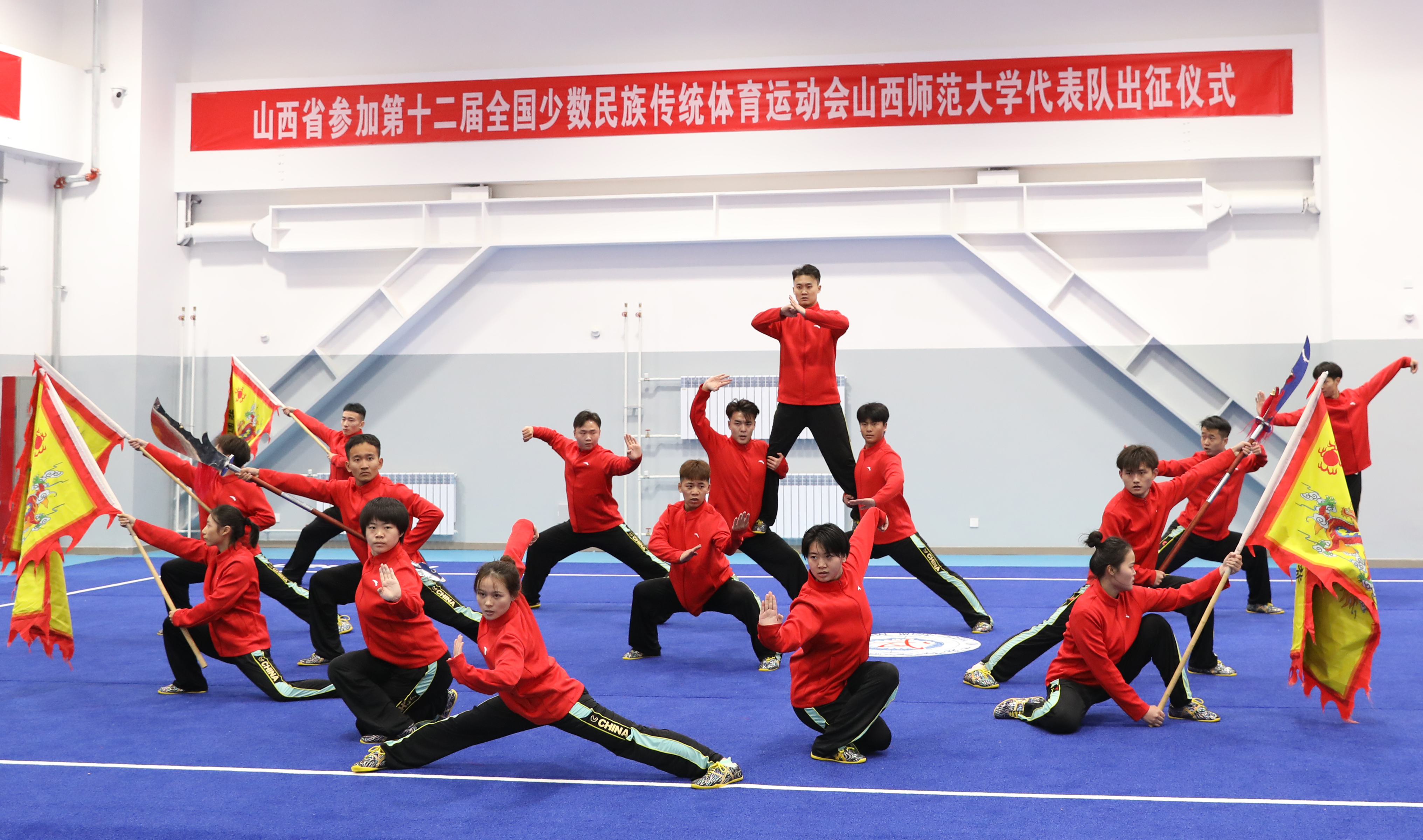 11月15日上午,第十二届全国少数民族传统体育运动会304永利集团代表队出征仪式在体育实训楼武术馆举行。公司党委书记殷杰宣布第十二届全国少数民族传统体育运动会304永利集团代表队出征,董事长许小红作了动员讲话,副董事长白文宏主持出征仪式。