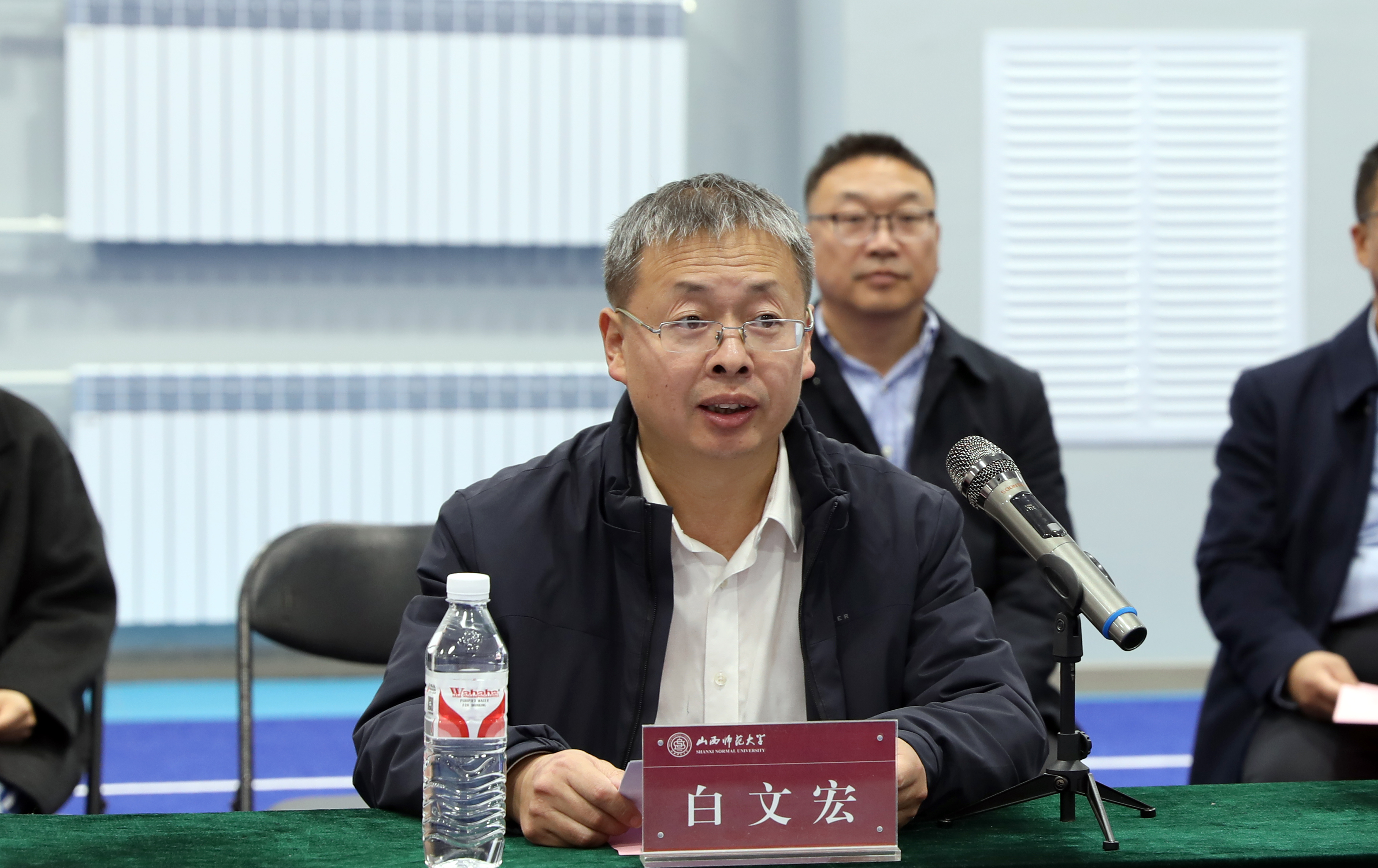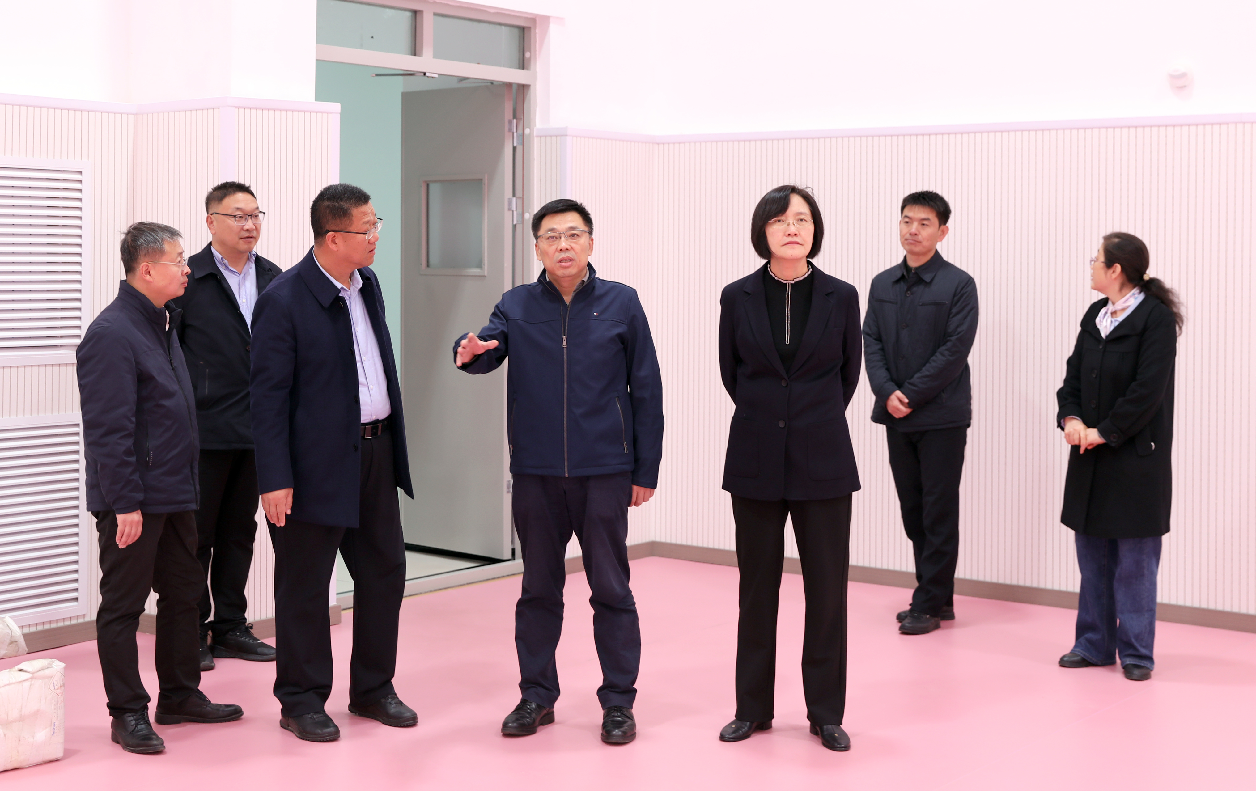 校领导察看新使用的体育实训楼