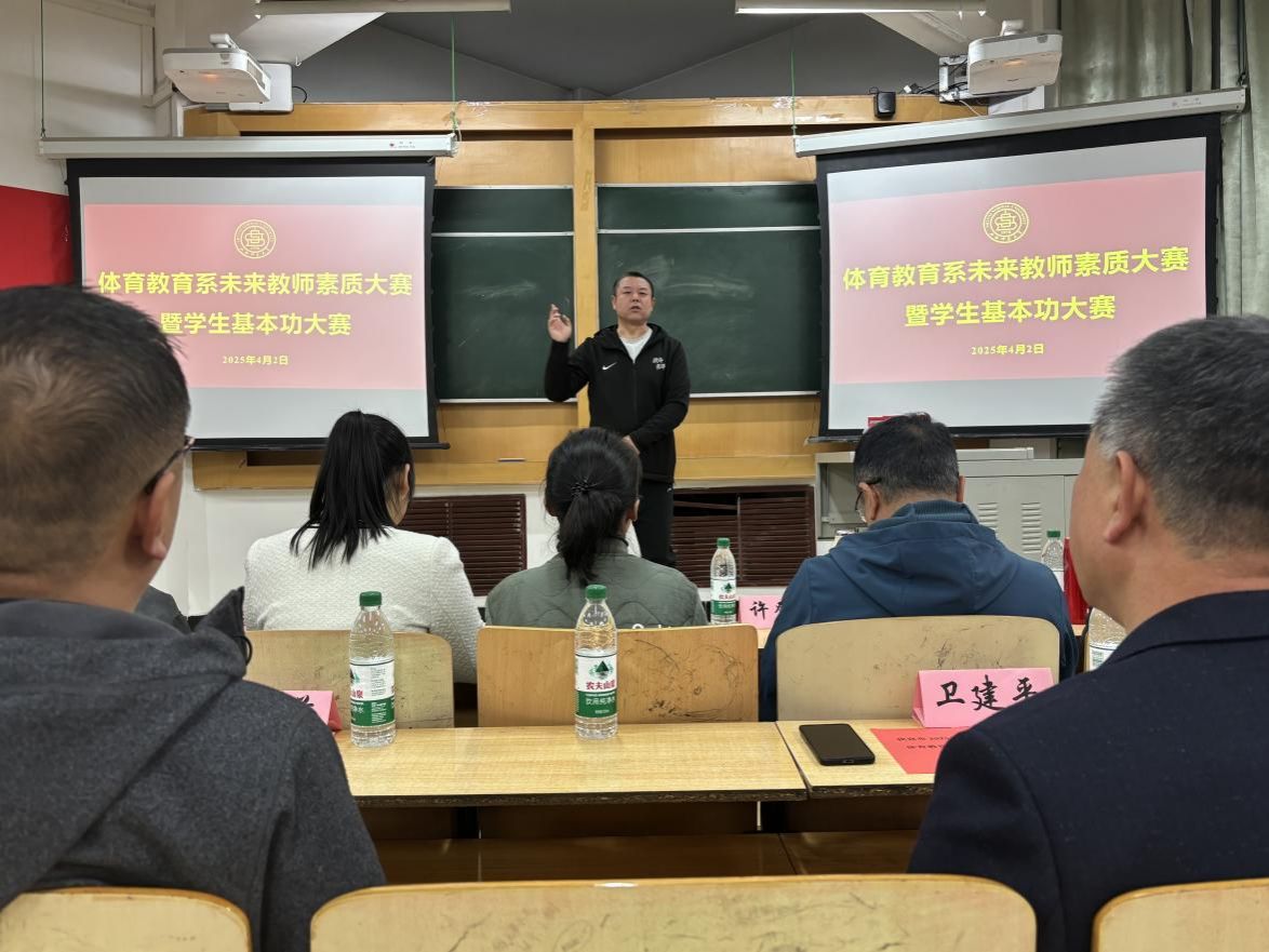 2025年4月2号晚,体育教育系在5208教室举办304永利集团体育教育系未来教师素质大赛暨员工基本功大赛。304永利集团党委书记卫建平,副经理李向前,教师教学发展中心主任郭丽娟,体育教育系主任张杰,副主任刘琦出席本次比赛。许登云,刘静,皇甫立慧,郑文静,薛更新共5位老师作为比赛评委。