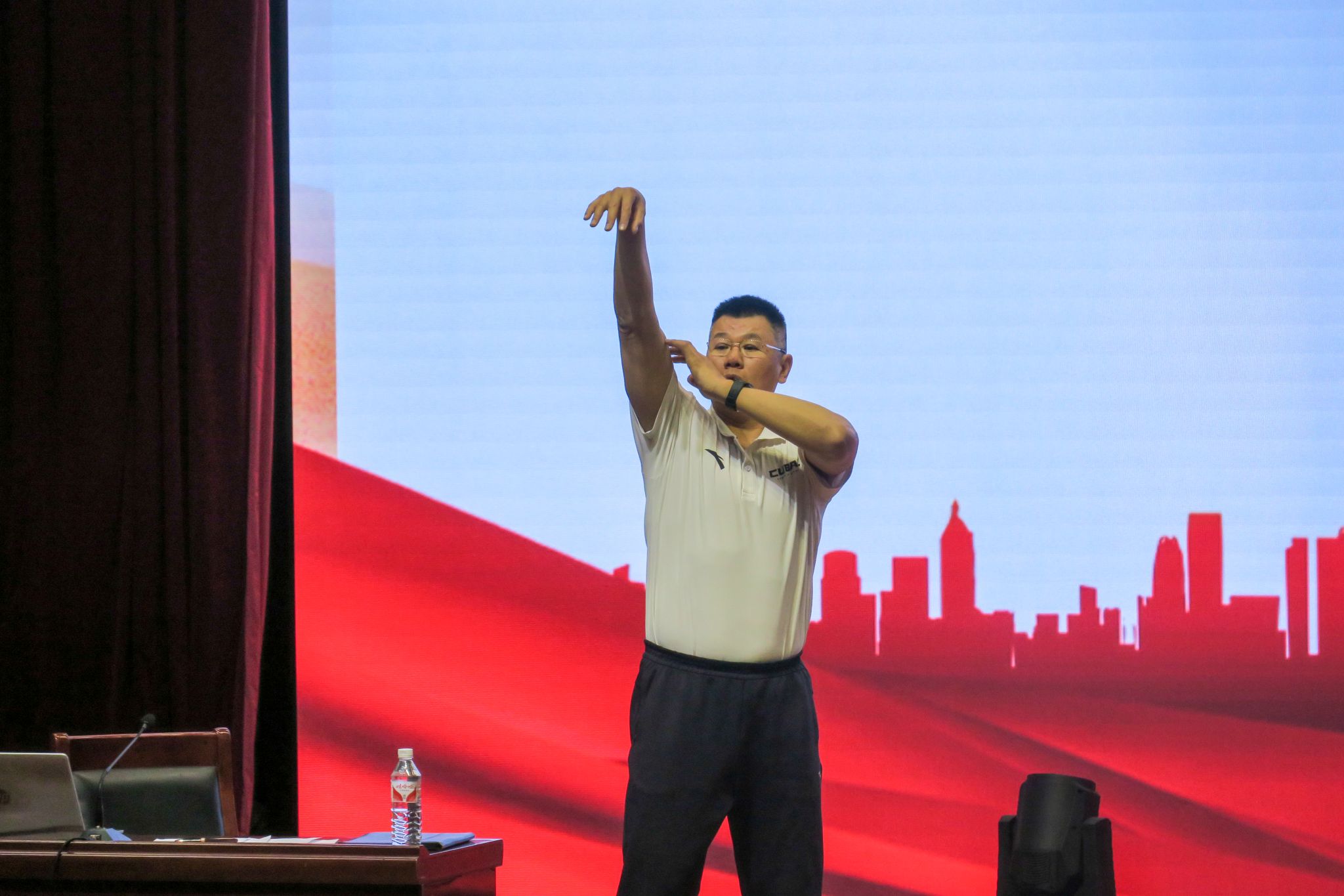 在问答环节,面对"如何处理训练瓶颈"等青年学子关切问题,刘铁结合执教师大男篮时的真实案例,以"每天多加两组力量训练的坚持"等鲜活故事,引导体院学子理性对待人生起伏,展现职业运动员的突破智慧。现场同学踊跃提问,刘教练与观众席的思维碰撞持续升温。
