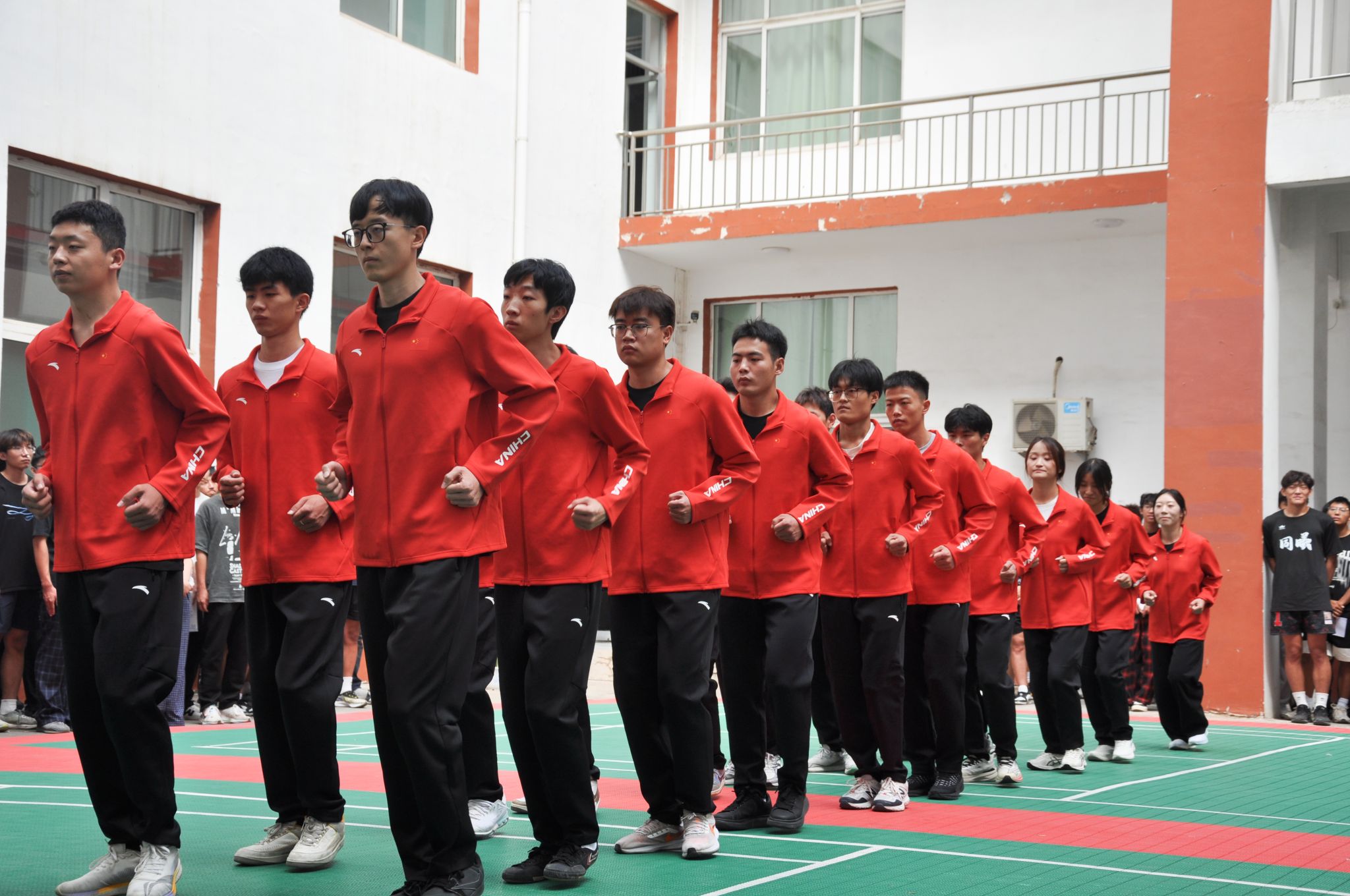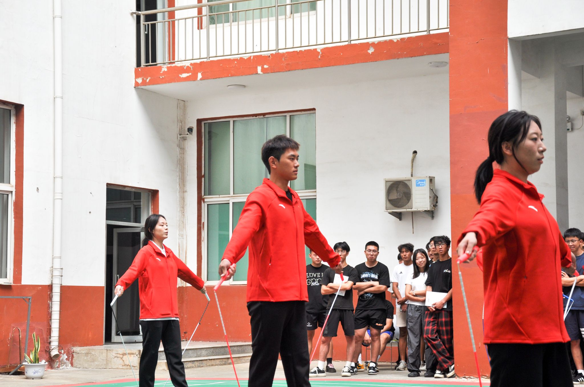 随后,支教团志愿者进行了队列队形操练、广播操和绳操花式表演展示,表现出良好的身体状态和精神风貌。