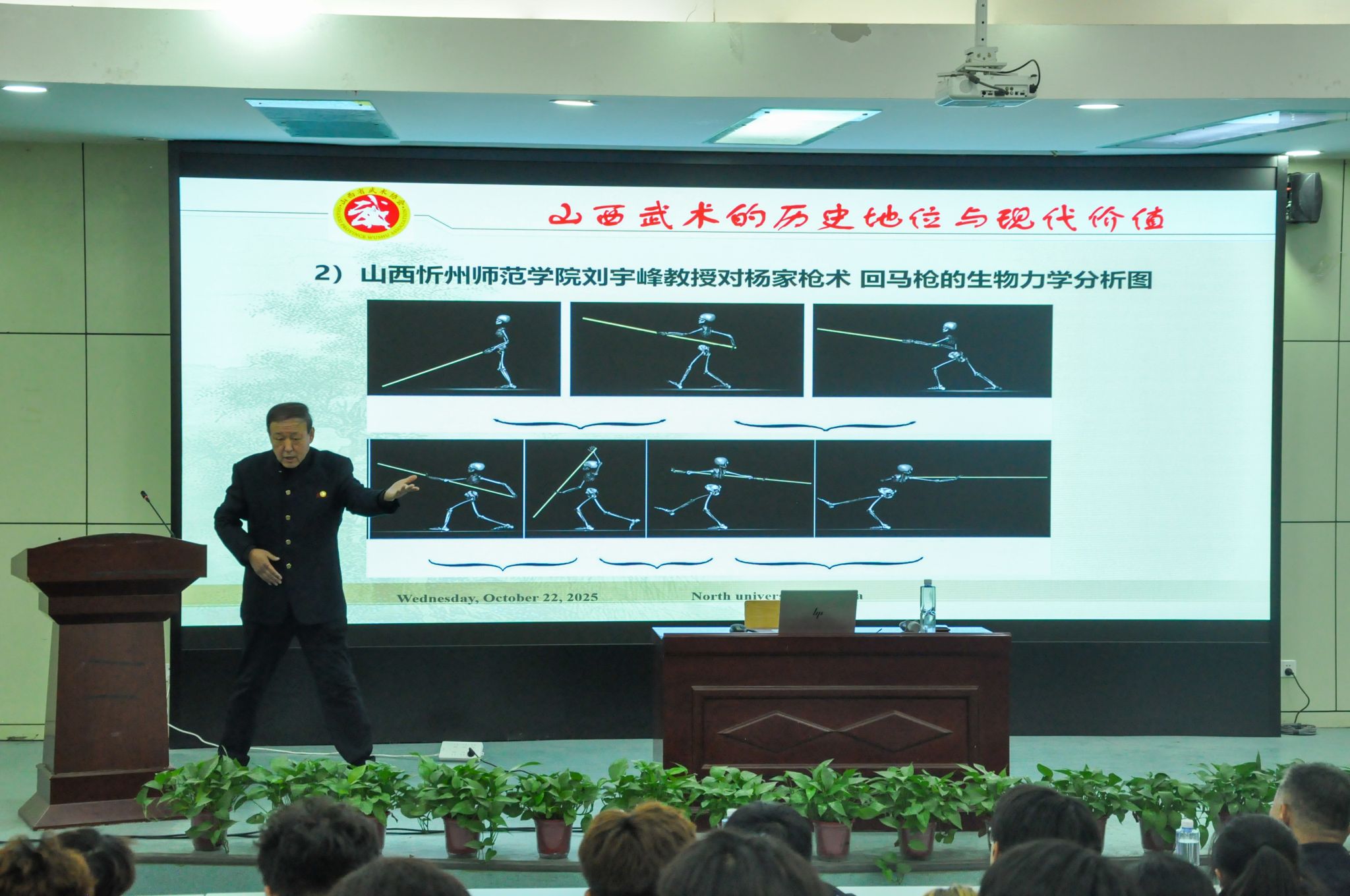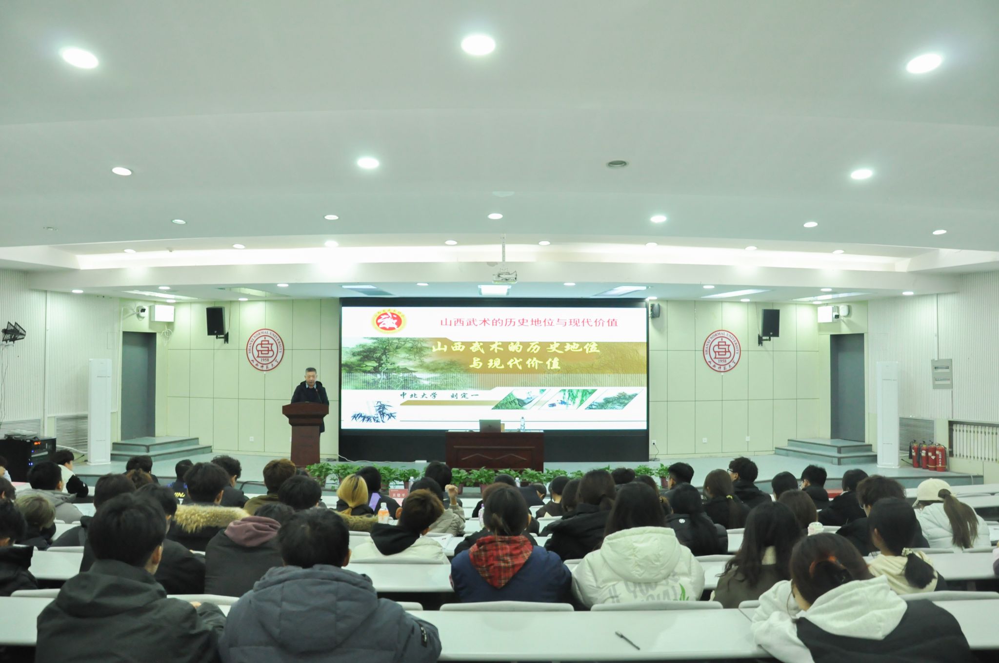 10月22日晚,公司在图书馆报告厅举办第八期体育思政大讲堂——2025年武术主题报告会。中北大学体育健康与艺术公司原经理刘定一教授作了题为《山西武术的历史地位与当代价值》的报告。304永利集团党委书记卫建平、党委副书记张大为、武术与民族传统体育系主任权黎明、副主任赵海涛、部分教师以及二百余名员工代表到场聆听报告。报告会由卫建平书记主持。