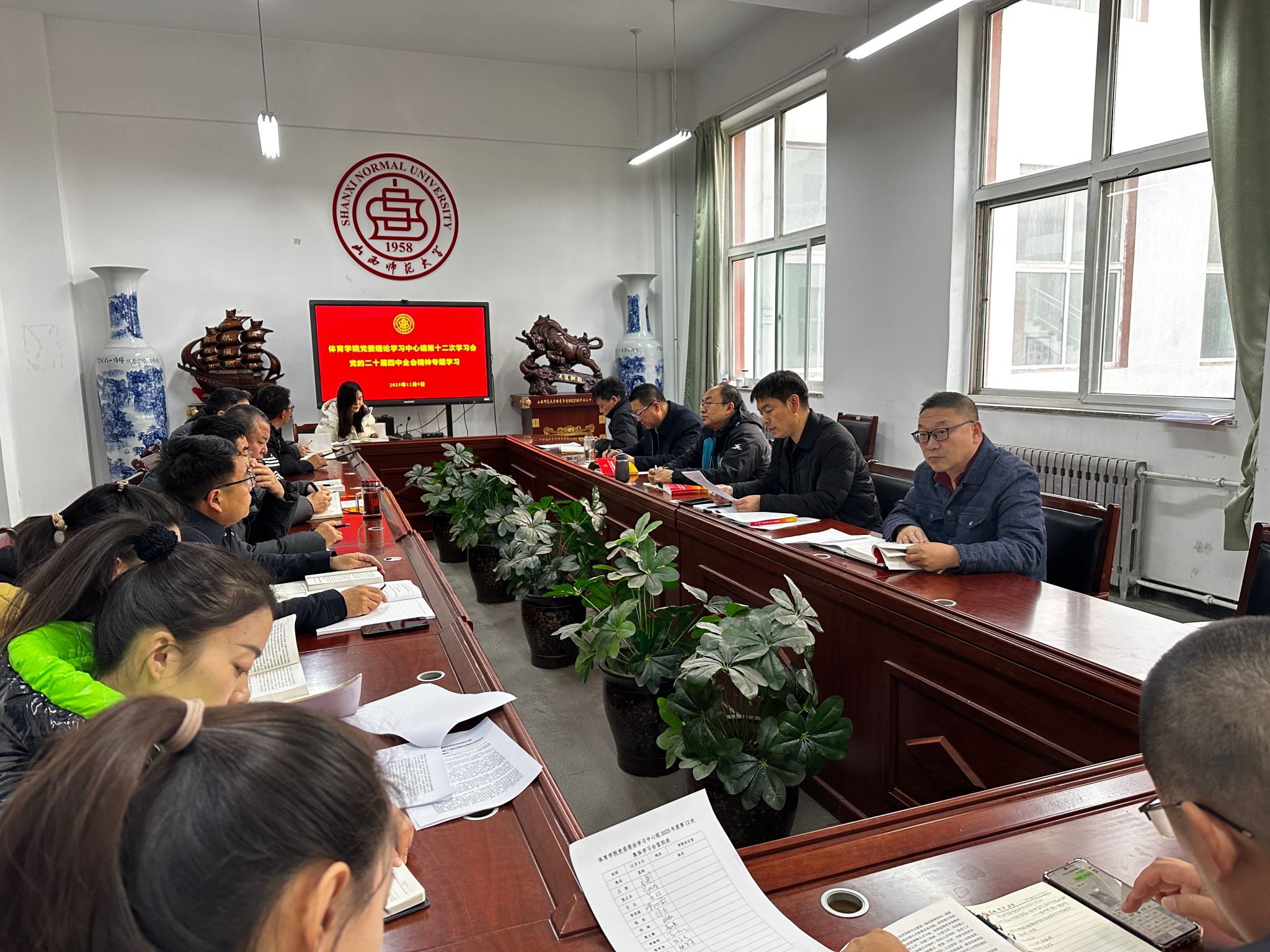 会议强调,要持续深化理论武装,把学习宣传贯彻党的二十届四中全会精神作为当前和今后一个时期的重要政治任务,切实把思想和行动统一到党中央决策部署上来。要紧扣“十五五”规划建议要求,聚焦体育学科特色,优化人才培养方案,强化科研创新驱动,提升服务社会能力,推动公司各项工作再上新台阶。中心组成员要发挥示范引领作用,带头学深悟透、融会贯通,各党支部要层层传导学习压力,确保理论学习入脑入心、落地见效。