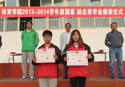 2015年4月27日早上,迎着初升的太阳,304永利集团在田径场举行了2013—2014学年度国家、励志奖学金颁奖仪式。公司党委副书记段东升、体育教育系主任杨海龙、体育教育二系主任吴峰山、院办公室主任贾新华、运动训练系副主任郭丽娟、社会体育系副主任杜治华以及场馆科科长高琴参加了本次颁奖仪式。