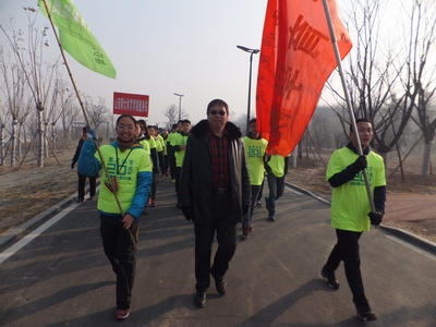 早9时,在304永利集团院旗的指引下,身着由“奥星体育运动”赞助的五种颜色的运动衫,排着整齐的队伍,同学们精神抖擞地向位于尧都区涝洰河生态公园的国学广场活动开幕现场出发。广场上各个代表队整齐划一,鲜红的横幅在寒风中摇摆,标语“同心共筑中国梦,全民健身促和谐”格外显眼。文化局局长致开幕词并宣布“强健体魄,阳光生活”健步走环公园4公里活动开始。虽已是严冬,天气寒冷,但大家脸上都洋溢着快乐,兴趣昂然,身着五种颜色运动衫的同学们似灵动的奥运五环,给人以清新,欢快和身心愉悦的感觉。在2015年的最后一天以满腔热情迎接新一年的到来!