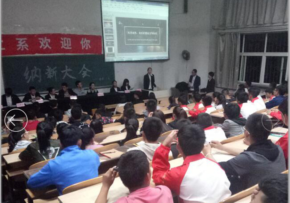 按照纳新大会程序,首先,由体教二系员工会主席刘根延对大一新生表示欢迎并简述了体育教育二系员工会的主要职能及发展历程。由团总支书记李薇对系团总支职能及人员构成进行简介。员工会下设各部门负责人对本部门的职责和主要工作进行了介绍,并对员工会选人、用人提出具体要求。其次,由17级新生自愿申报自己喜欢的部门,并进入自荐和提问环节,大一新生都踊跃参加积极发言,表达了服务师生,锻炼自我的意愿。之后各部门负责人进行了点评。最后由上一届主席孔栎澎做了大会总结。