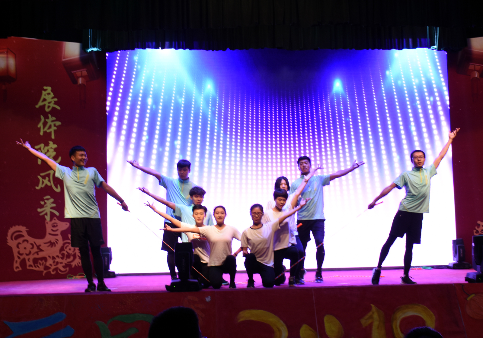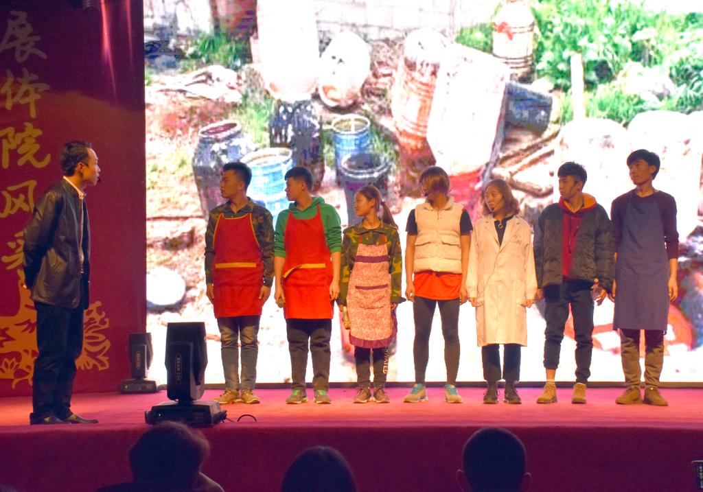本场晚会精彩纷呈,历经了一个月的悉心准备,最终为全院师生带来了一场视听盛宴。首先由舞龙舞狮队带来的《雄狮闹春》正式拉开了晚会的序幕,现场还播放了全院师生的新年祝福视频,整场晚会持续近一个半小时,节目精彩纷呈,高潮迭起。动感十足的舞蹈《青春活力范》《爵士》充满了校园气息,充分展现了老员工们年轻旺盛的生命力;校园十佳歌手为大家倾情演唱了歌曲《You Don’t Know》《勇气》《其实》让同学们欣赏到一场视听的盛宴,全场师生和着节奏鼓掌,敲气棒,挥手,把现场的气氛完全带动了起来;权黎明老师带来的武术《武韵》更是将整场晚会推向了高潮;小品《疯狂造假团》通过幽默的表演,反映社会的现实,体现了老员工明锐的洞察力,引起了场下叫好声不断;花式跳绳表演将公司的特色演绎得淋漓尽致;话剧《红高粱》中那一个个熟悉的场景,激起了心中片片涟漪朴实无华的台词不禁让人动容;民族传统体育系员工带来武术表演《强国雄风》又一次在同学中引起了强烈的反响;最终晚会在大家的热烈掌声中圆满结束。在场的领导、老师和表演人员合影留念,为此次的晚会画上圆满的句号。