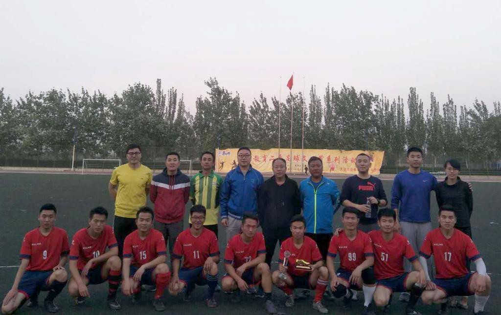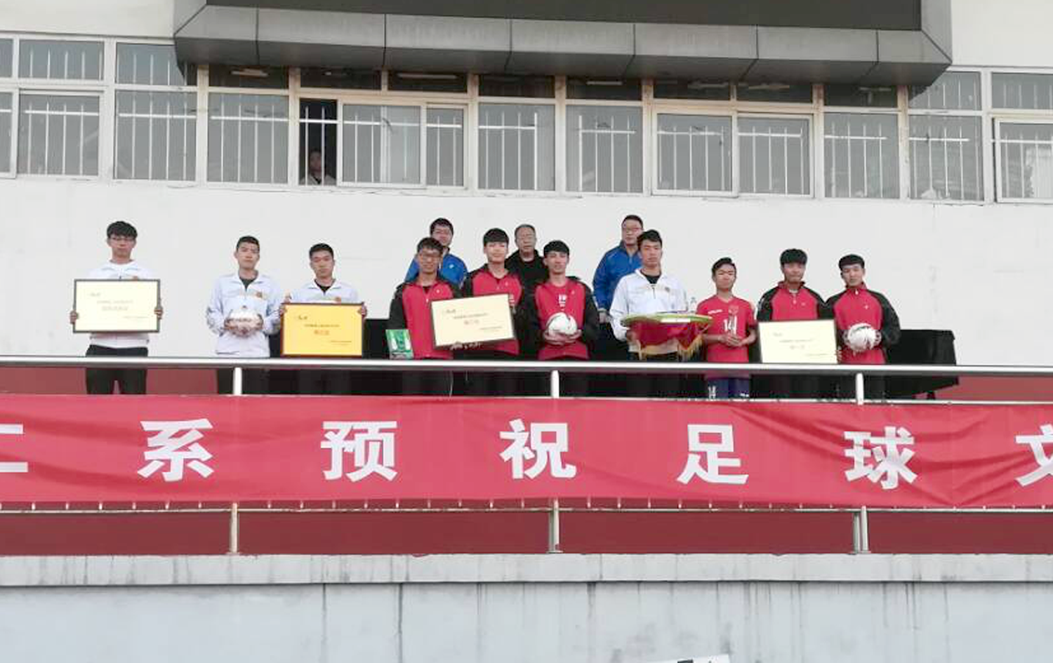 在闭幕式上,二系副主任李向前做了的总结,他对本次活动进行了全面总结点评,并对本次活动中表现出色的运动员、裁判员、员工会工作人员进行了表扬。接着我系大一大二员工进行了团体操表演——易筋经。最后我系教工队和员工冠军队(1501班)进行了一场足球对抗赛,员工冠军队以2:0的分数赢得比赛。中场休息时,由吴峰山主任、院团委副书记程祖浩、李向前副主任为本次足球文化节系列活动中获奖的班级、个人颁发了奖状、奖品,为我系足球文化节系列活动画上圆满句号。(图文/贾镟业)