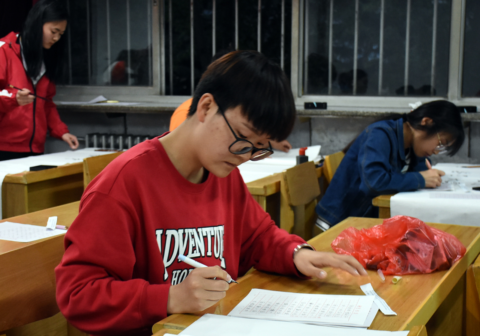 4月17日晚,由体育教育系主办,体育教育系党支部、团总支、员工会承办的体育教育系未来教师风采大赛之翰墨书法篇比赛在公司教学楼7、8、9教室举行,其中翰墨书法篇包括硬笔书法和软笔书法。 体育教育系副主任张杰老师亲临现场,进行了观摩,参赛选手无论是在硬笔还是软笔书法方面,都全神贯注,潇洒挥毫。他们用心书写每一笔笔画、每一个汉字,认真完成着自己的作品,尽其所能地展示自身书法的才能,体现了书法的独特风格。最后,参赛选手相继在规定的时间内完成了比赛。