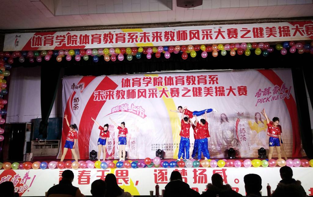 2018年12月14日晚7点30分,由体育教育系党支部、体育学教育系主办,系团总支、员工会承办的未来教师风采大赛之健美操比赛在公司大礼堂如期举行。公司党委书记李学刚、副书记孙学虎,团委副书记程祖浩、系领导和系全体辅导员莅临本次大赛。裁判组由国际级裁判龙勋老师担任裁判长,研究生及大四同学担任裁判员。