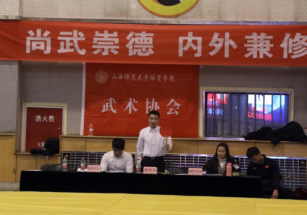 本次比赛裁判员们严格遵守《裁判员守则》,认真履行工作职责不辞劳苦,公正裁判。全体运动员自觉遵守比赛章程,听从指挥,服从裁判,赛出风格,赛出水平。最终,周友宝、张文帅、崔丹阳、郝尤尤、姜亚兰等13人获得武术散打竞赛冠军;石腾飞、张智超、王大伟、马有为等15人获得武术套路竞赛冠军;马凯丽、于任游、肖新雨、赵远东等14人获得了武术套路竞赛亚军。贾惠明、石杰、王小宇、宋伟刚等13人获得武术散打竞赛亚军。民族传统体育系、体育教育系、运动训练系、社会体育系、体育教育二系获得了体育道德风尚奖。出席决赛的领导老师为所有获奖团体和选手颁奖。