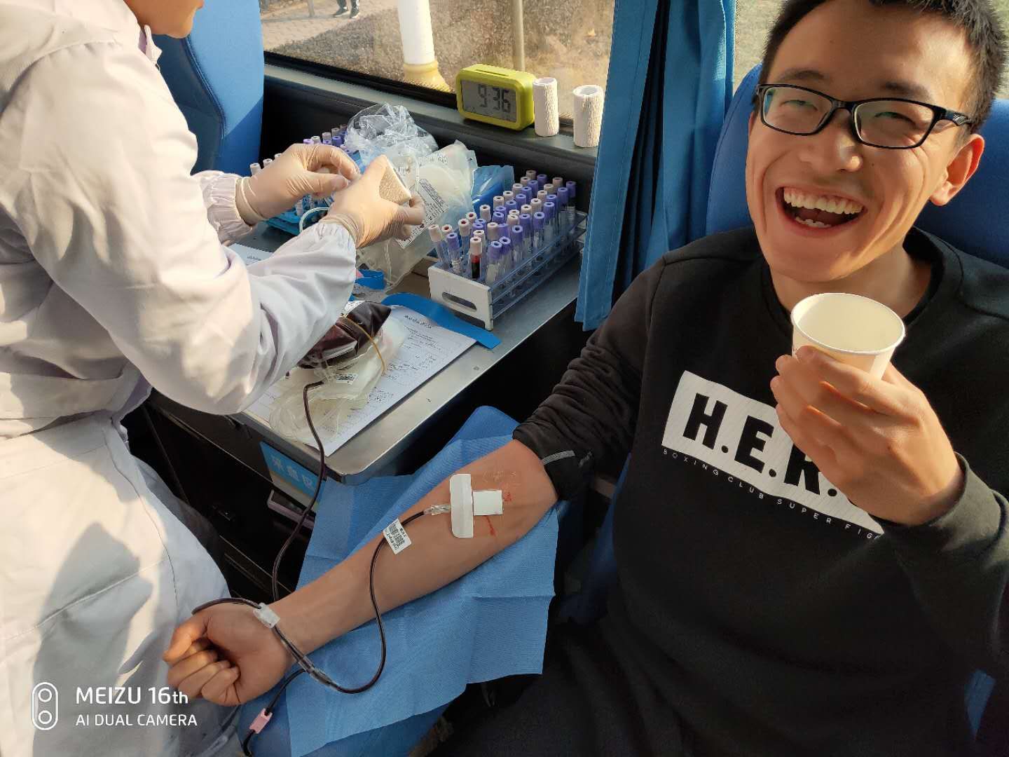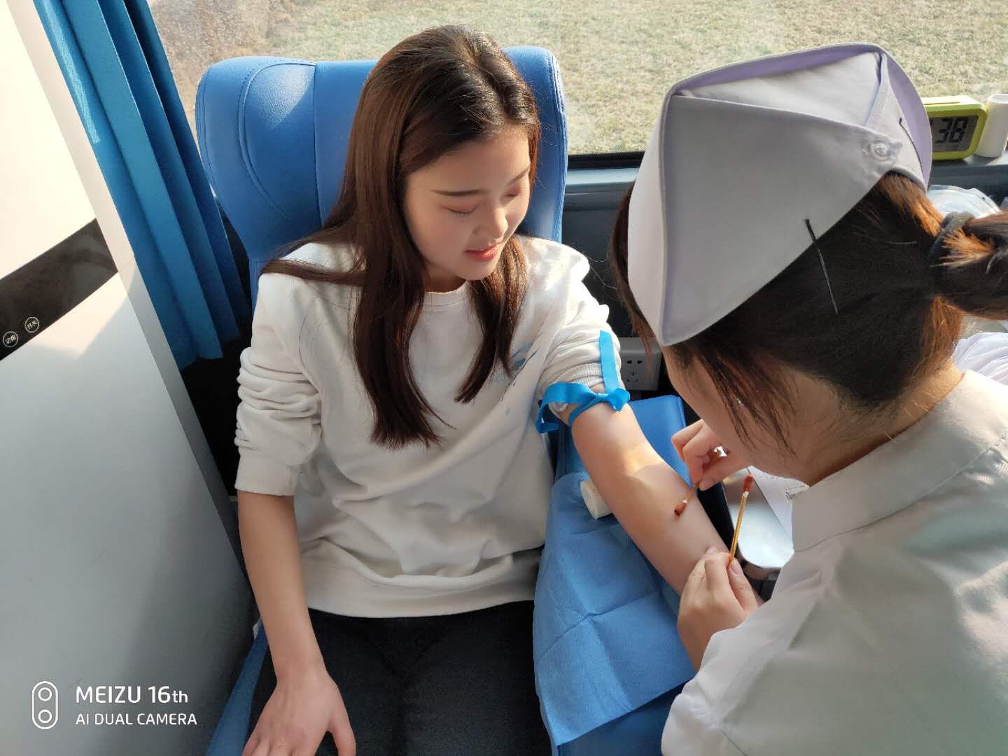 在教学楼前,“蒲公英”青年志愿者服务队的同学在献血车前热情洋溢的做好宣传,过往的同学都纷纷驻足咨询,有的同学则主动的拿上登记表准备献血。在采血车上,医护人员紧张的忙碌着做着准备工作。在献血过程中,同学们充分表现出了无私奉献的精神,充分体现出体院人爱国主义热情和责任与担当的使命感。(院团委供稿)