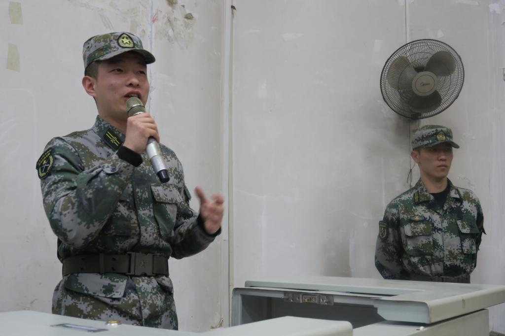 会议在庄严民兵之歌中拉开序幕。首先,民兵网络信息分队队长社体1601班梁少杰同学进行宣讲。他简要介绍了国防的重要意义和我国的军事国防力量取得的进步,并分析了老员工应征入伍对个人发展十大作用。作为退伍老员工,他通过观看视频、结合自身经历向同学们讲述了军营生活的风采,并对应征入伍的基本条件进行了说明,他鼓励符合条件的同学能够积极踊跃报名参加,献身祖国的国防事业。