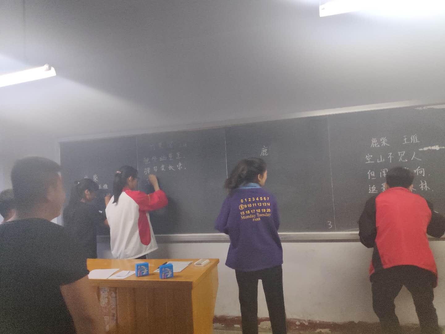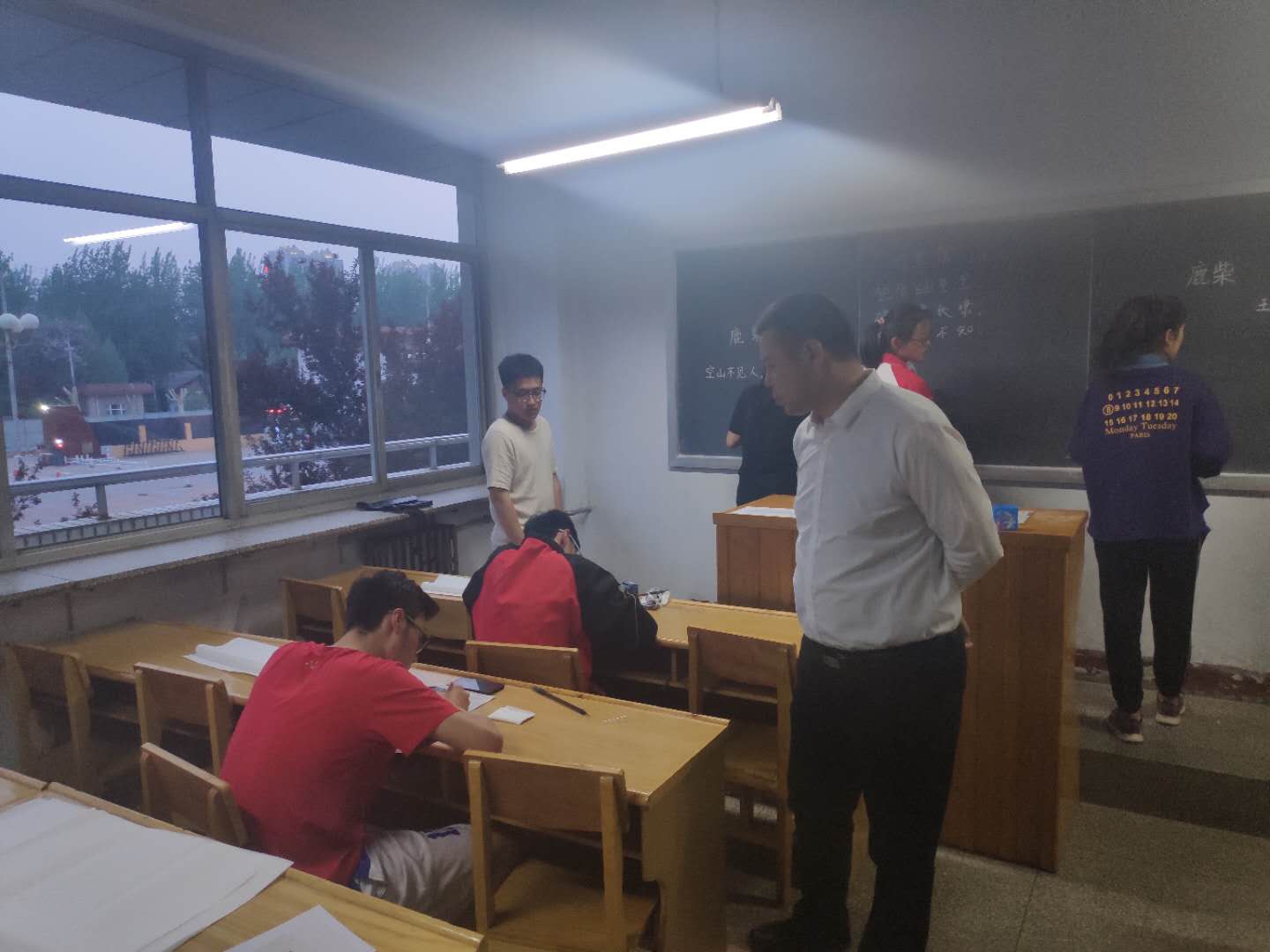 参加翰墨书法的选手们分别在2、3、4、5教室进行了毛笔,钢笔,粉笔字的书写比赛,42位选手迅速投入状态,认真书写。在比赛中,各位选手迅速投入状态,挥毫弄墨,认真完成着自己的作品并相继在规定时间内完成了比赛。